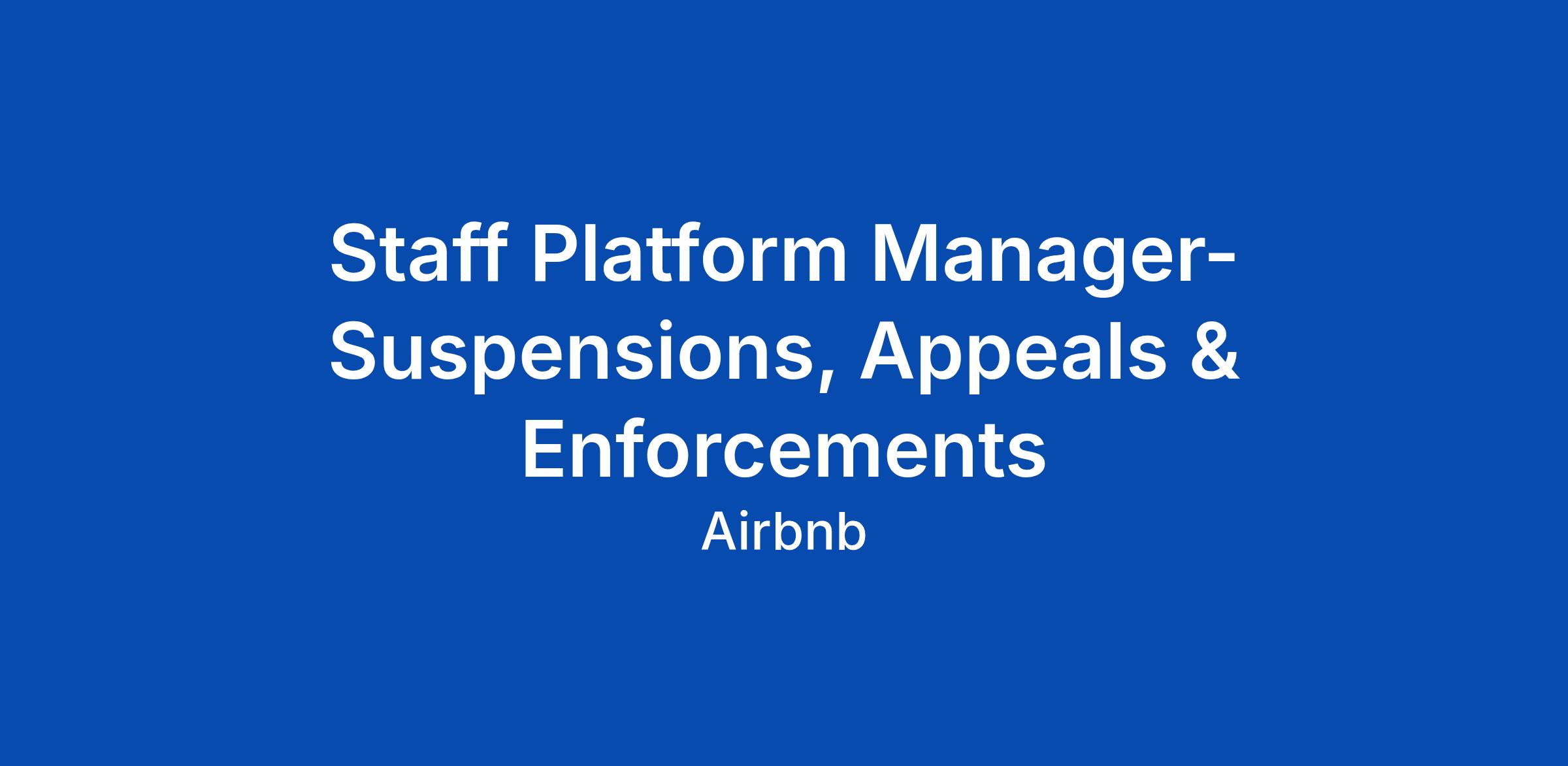 Staff Platform Manager- Suspensions, Appeals & Enforcements