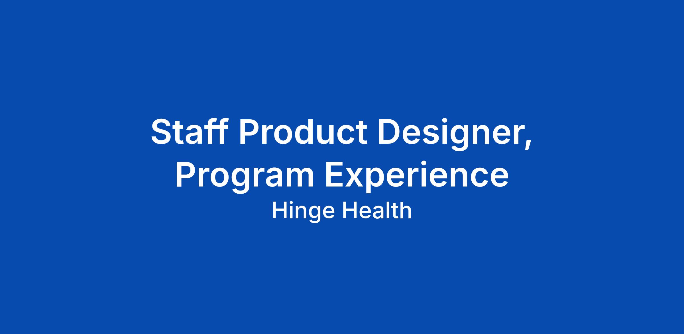 ABOUT THE ROLE Hinge Health is a company that recognizes the value of design – as a Staff Product Designer, you’ll join a tight-knit, collaborative team of designers who care deeply about creating cohesive and intuitive product experiences. Our team is at the center of solving impactful problems for millions of members who are managing their joint and muscle health, and making a meaningful difference in their lives. In this role, you’ll help shape our onboarding experience, designing solutions that makes every member’s start at Hinge Health effortless, motivating, and personalized. As a Staff Product designer, you’ll collaborate with cross-functional teams to create intuitive, user-centered solutions from concept to execution, including user research, interaction/UI design, and prototypes that evolve our member experience forward, while driving towards our key business goals. We’re looking for designers that excel in the ability to simplify complex challenges, care deeply about the quality of their work, have a strong track-record of shipping impactful experiences, come with a growth mindset, and bring a genuine desire to learn about our members. This is a high-impact role, at an e