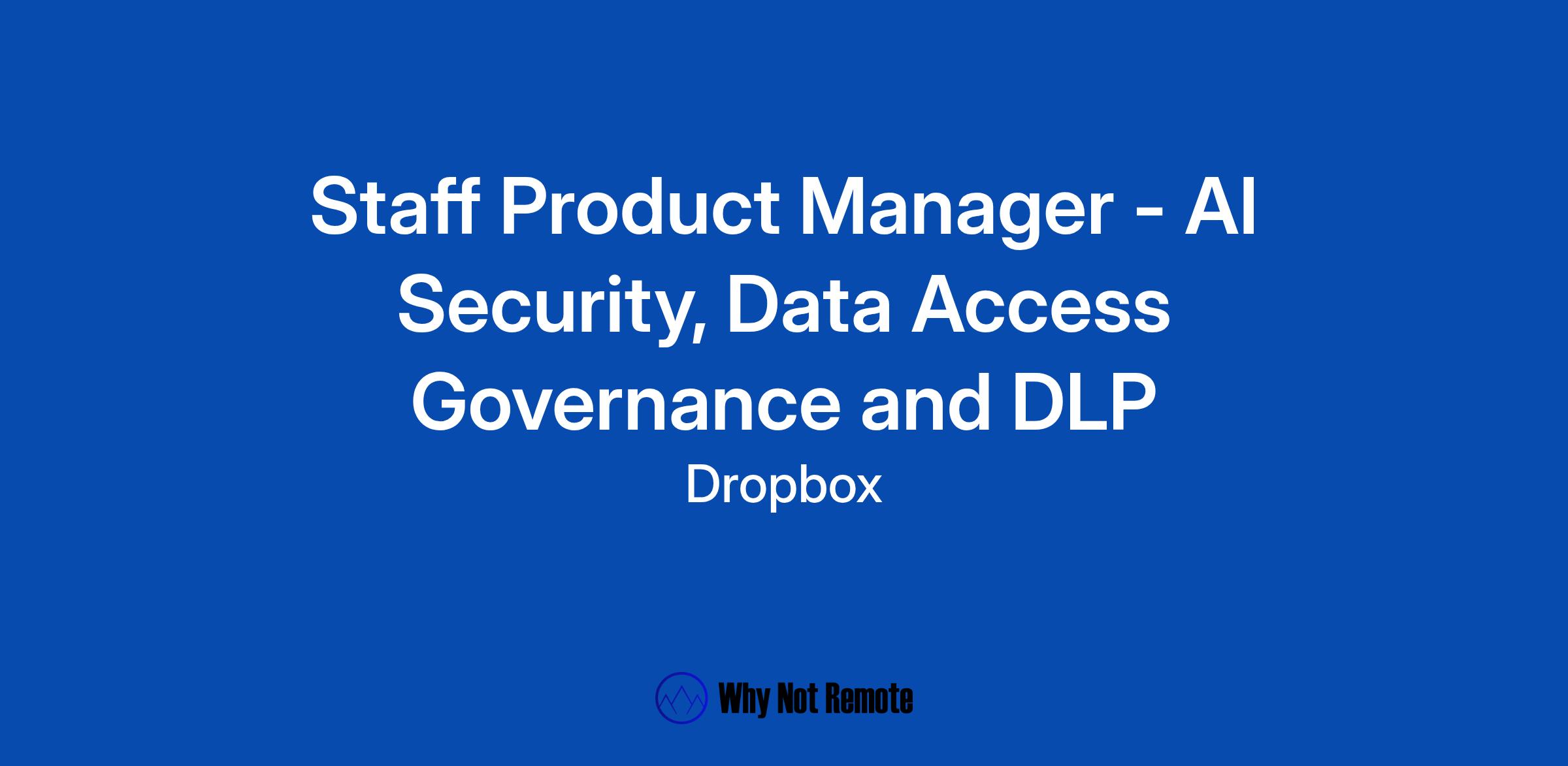 We are looking for a Staff Product Manager to lead this next phase — defining the strategy and key capabilities, shaping the roadmap, and scaling a new security business within Dropbox. This is a 0 → 1 opportunity to establish Dropbox as a leader in AI and Data security for SMBs and mid-market companies, bringing AI-driven access governance, insider risk protection, and compliance automation to businesses that need it most.