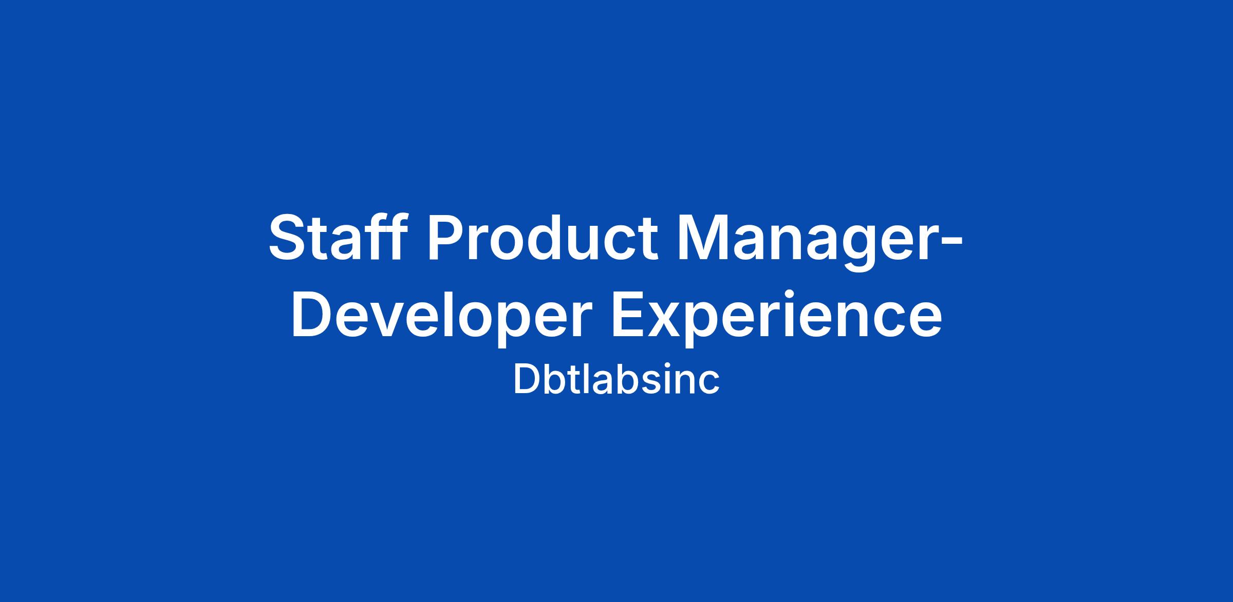 Staff Product Manager- Developer Experience