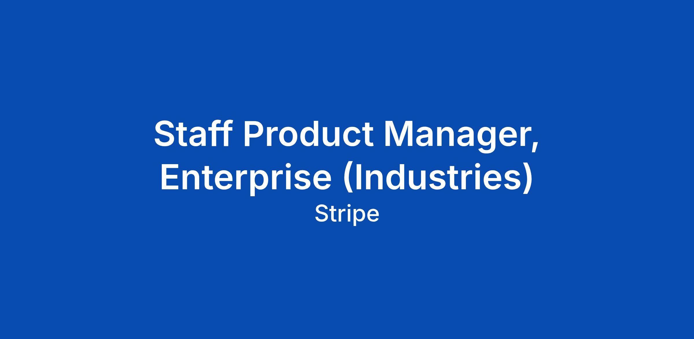 The Enterprise Product team is responsible for bridging the gap between Stripe's core capabilities and the bespoke needs of the world's largest organizations. We are hiring PMs who will be aligned to specific priority industries (e.g., insurance, healthcare, public sector), with each PM acting as the "CEO" of their assigned vertical - identifying high-leverage opportunities, building 0-to-1 products to solve industry-specific blockers, and influencing our global product roadmap. You will be... Click Apply to read the full job description.