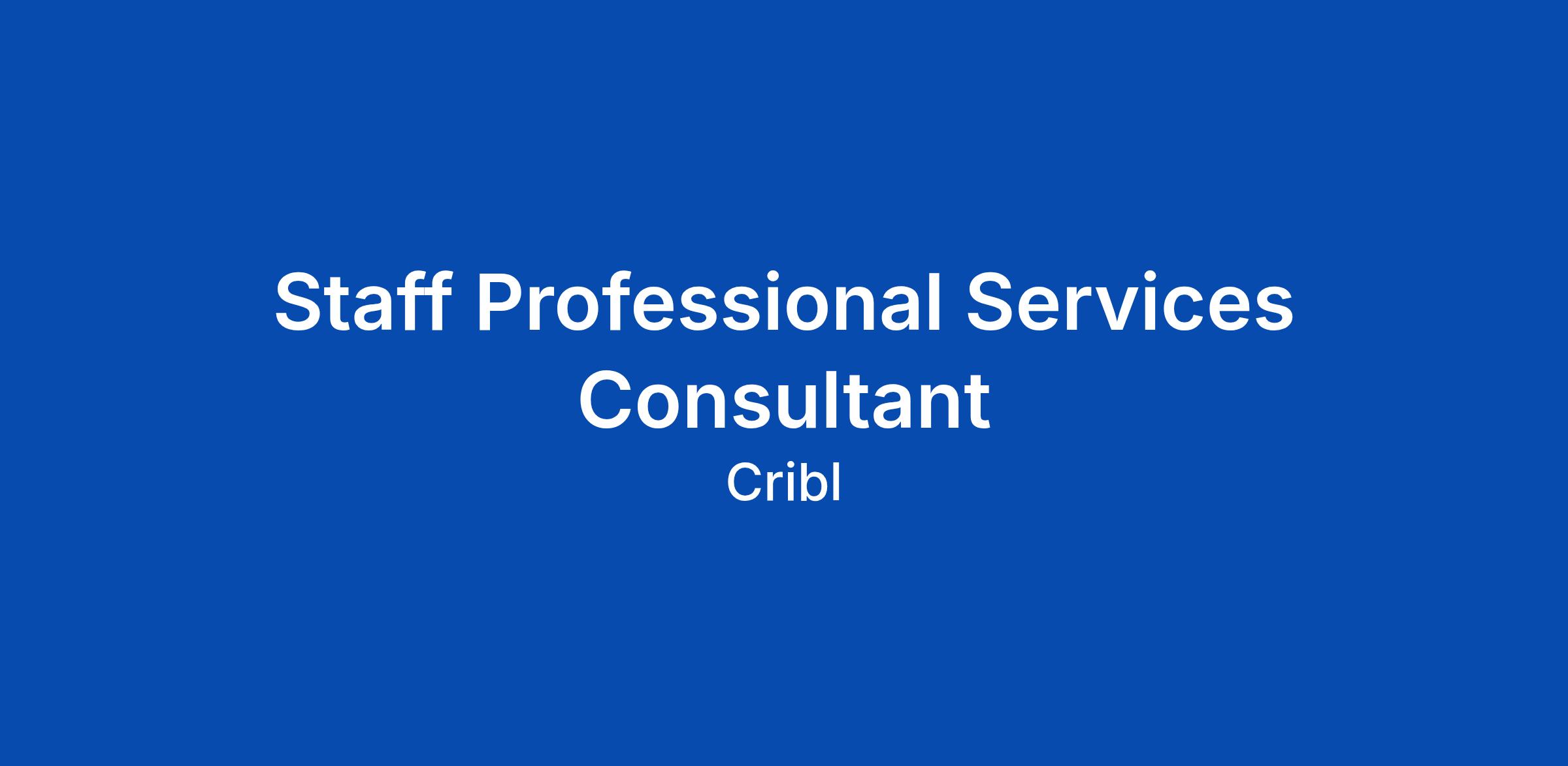 Cribl is seeking a Professional Services Consultant. We are a fast-growing, remote-first company with a mission to unlock the value of all observability data. At our core, we believe in shipping phenomenal products and doing good by our customers and communities. We provide our customers with a