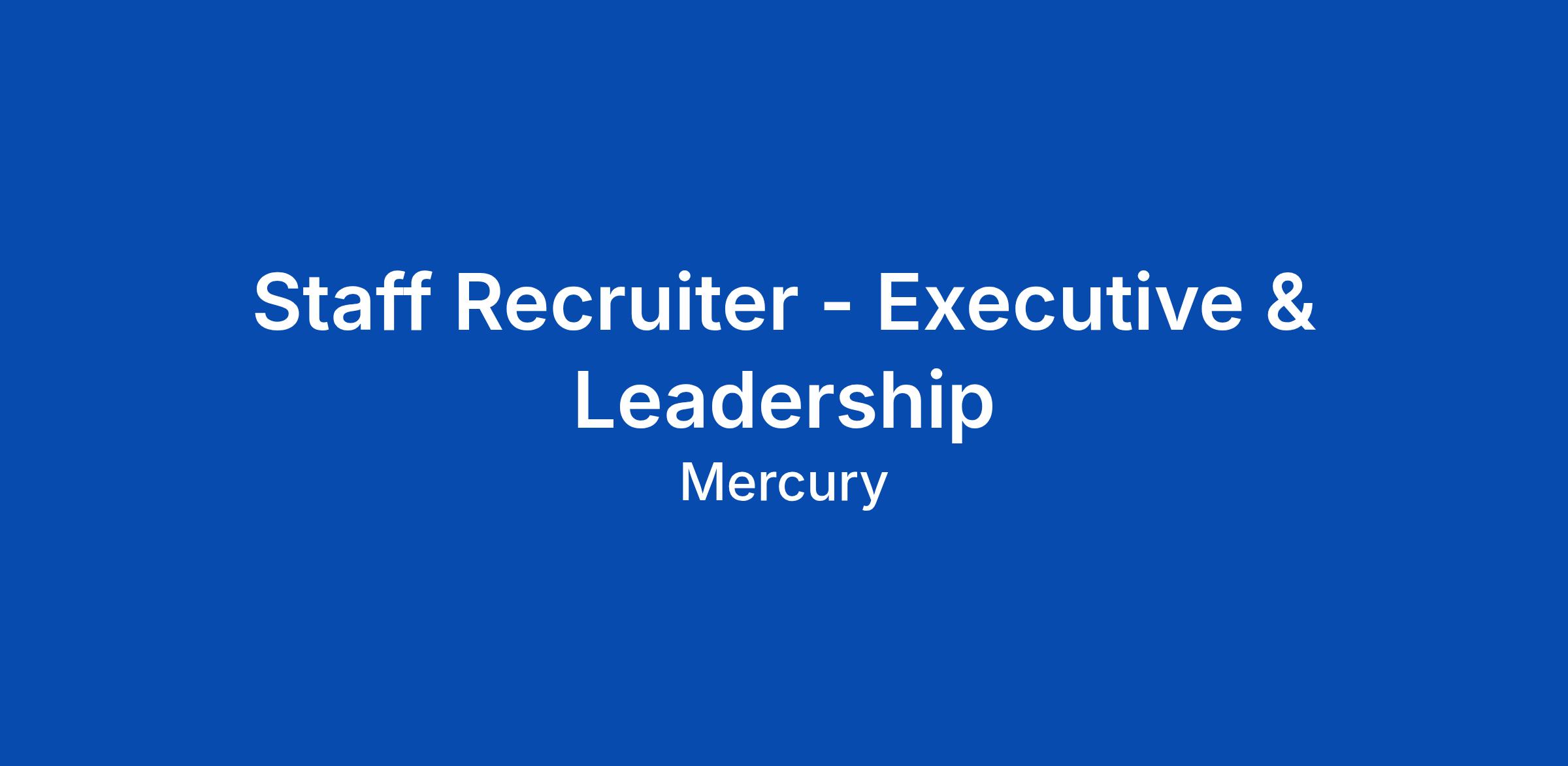 - Have the opportunity to lead 0 > 1 recruiting efforts as Mercury expands our business and products, which will require hiring Executives with niche skill sets and/or regulatory knowledge