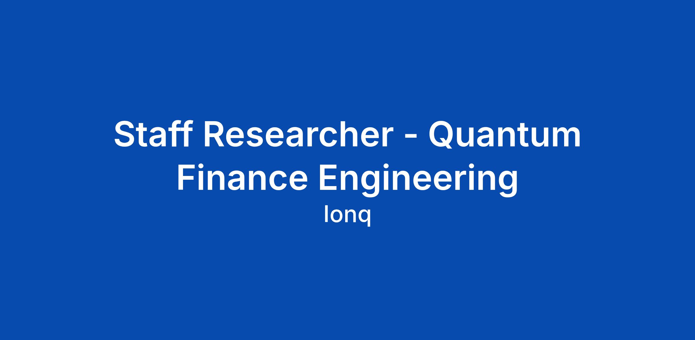 Staff Researcher - Quantum Finance Engineering