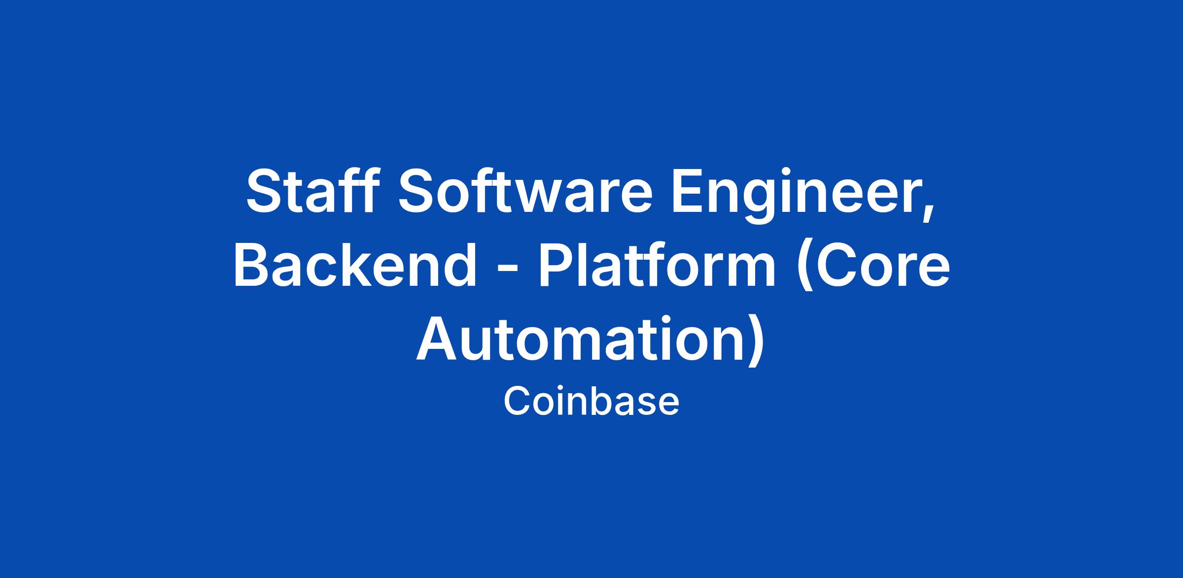 Staff Software Engineer, Backend - Platform (Core Automation)