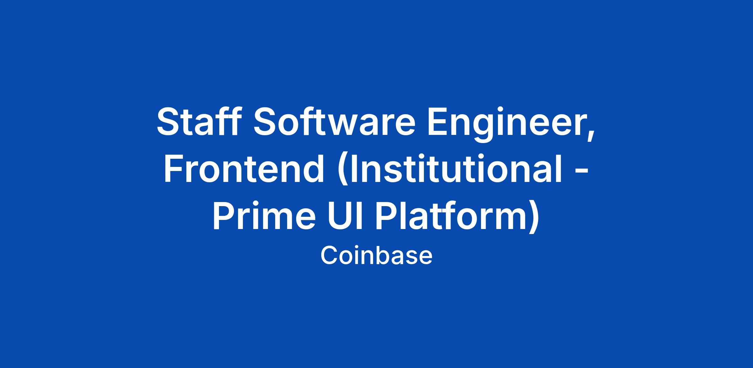 Staff Software Engineer, Frontend (Institutional - Prime UI Platform)