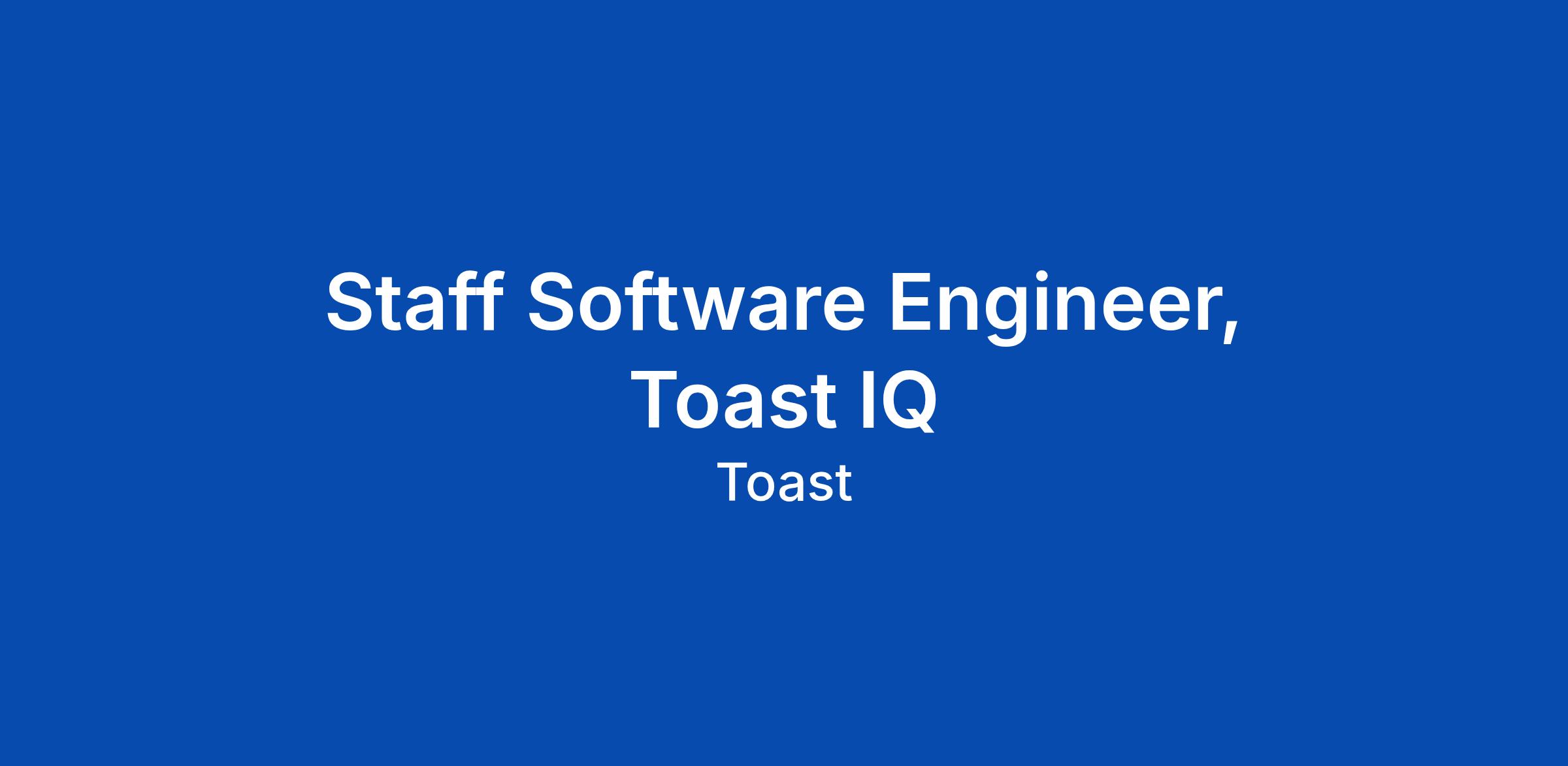 Toast is driven by building the restaurant platform that helps restaurants adapt, take control, and get back to what they do best: building the businesses they love. We are looking for a fullstack Staff Software Engineer to join the Toast IQ team to transform how Toast helps its customers run their restaurants.