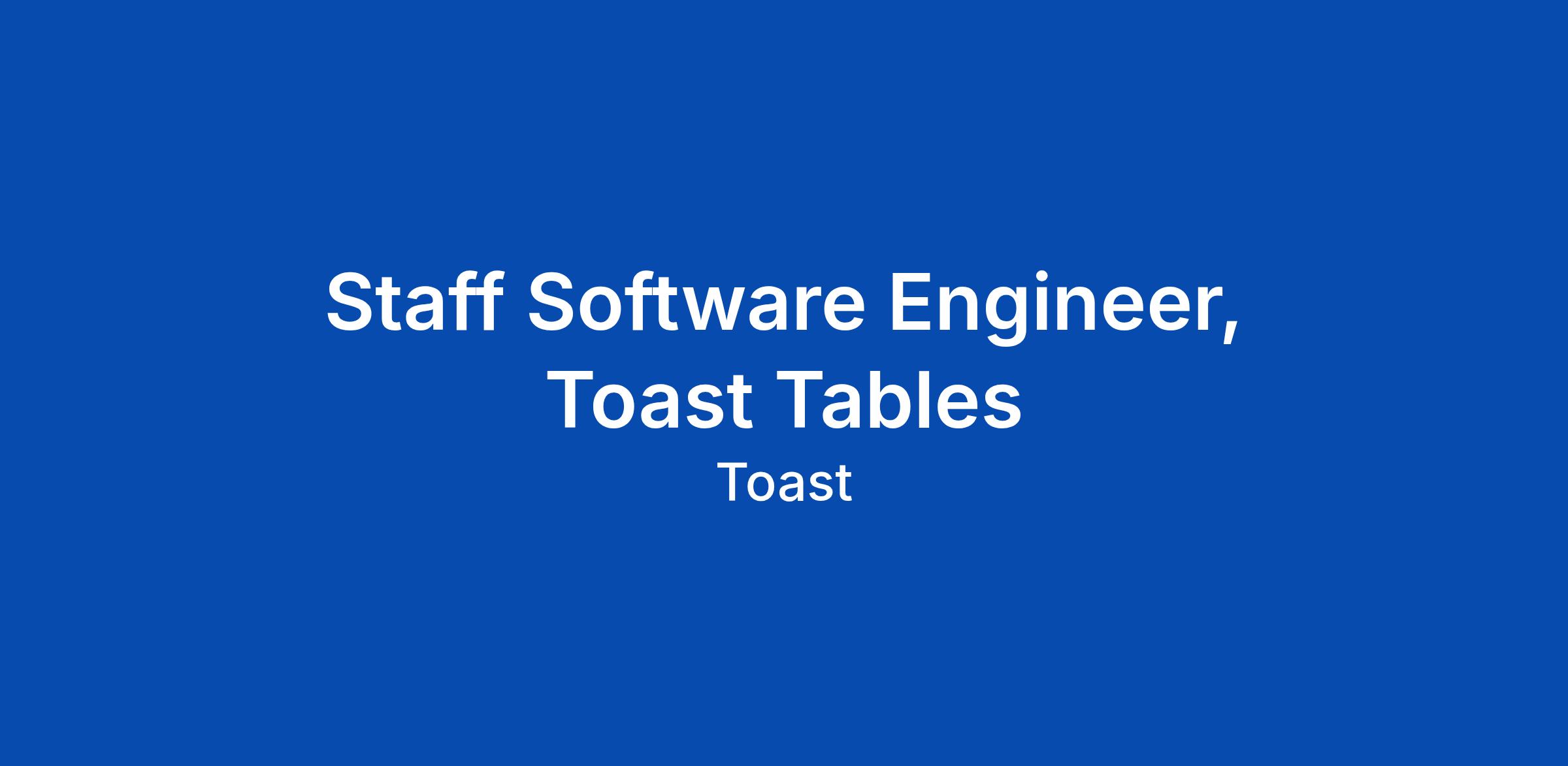Toast is driven by building the restaurant platform that helps restaurants adapt, take control, and get back to what they do best: building the businesses they love. We are looking for a Staff Software Engineer to join the Toast Tables team.