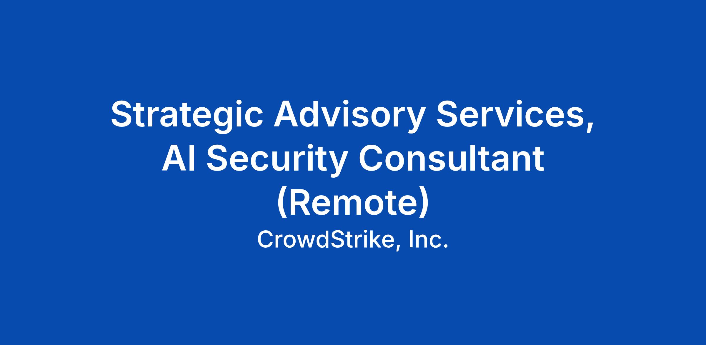 CrowdStrike’s Strategic Advisory Services team assists our customers with a wide array of proactive engagements to help enhance security programs, educate employees, and develop tailored cyber initiatives. The AI Security Consultant role is a primary contributor to delivering services focused on securing AI systems and applying AI tools to improve security processes. This role entails a strong focus on task-oriented activities, reporting, and supporting engagement leadership to ensure projects are performed on time and to our highest standards. This position also includes opportunities to contribute to thought leadership, methodology development, and other “back of office” tasks, as a secondary function of the role.