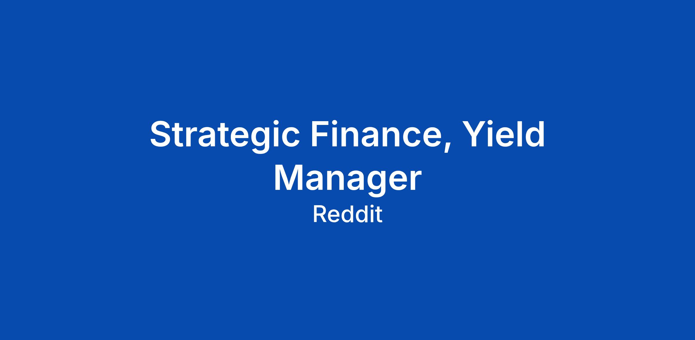 Strategic Finance, Yield Manager