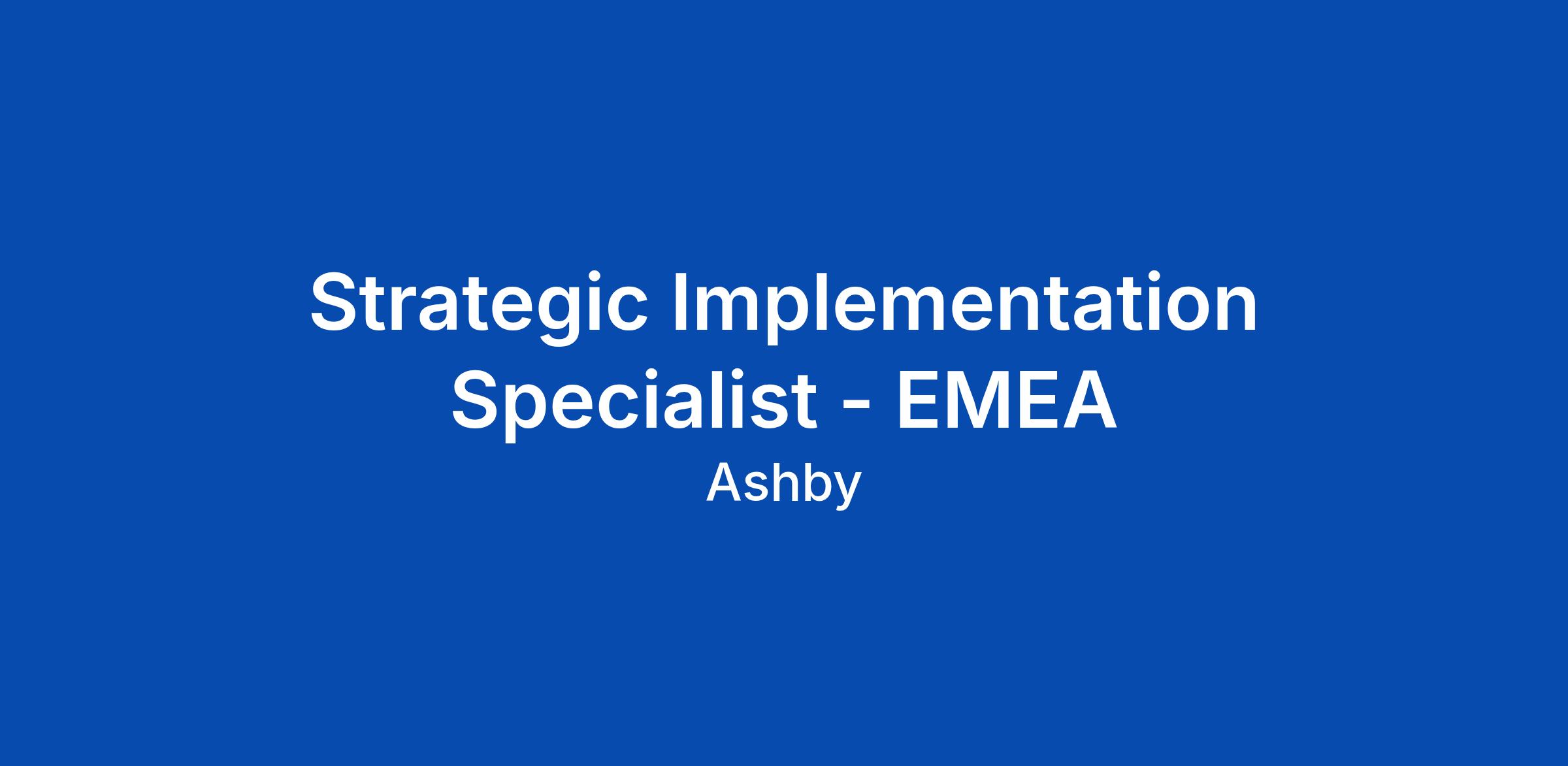 Strategic Implementation Specialist - EMEA