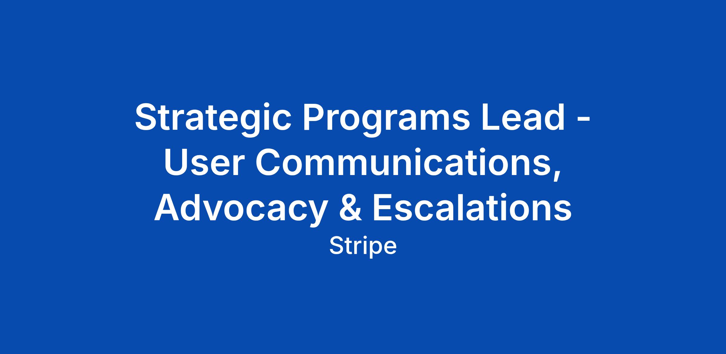 Strategic Programs Lead - User Communications, Advocacy & Escalations