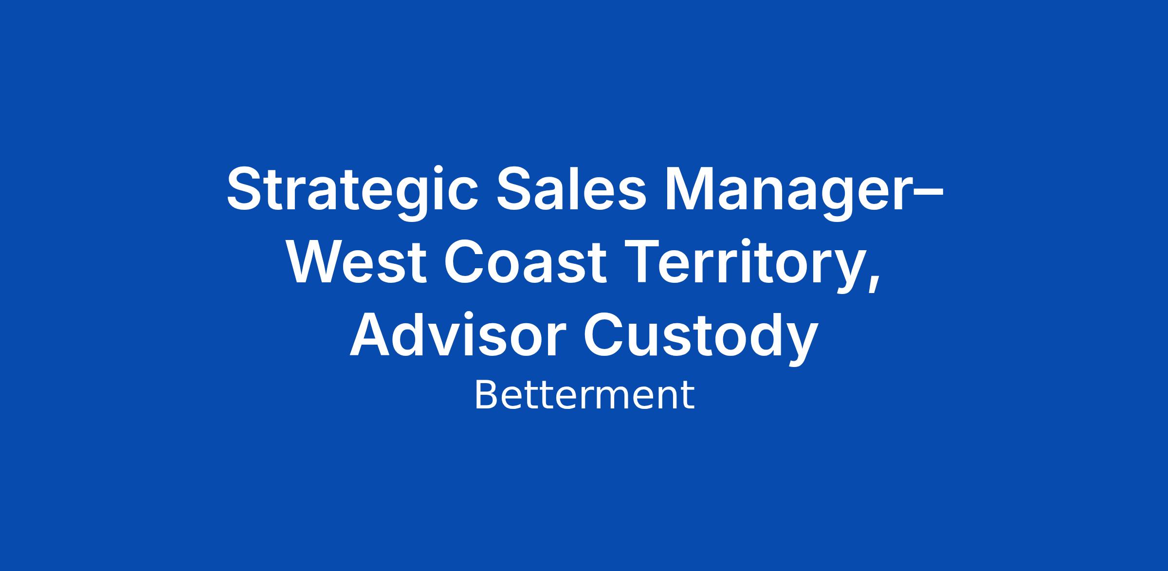 Strategic Sales Managerβ West Coast Territory, Advisor Custody
