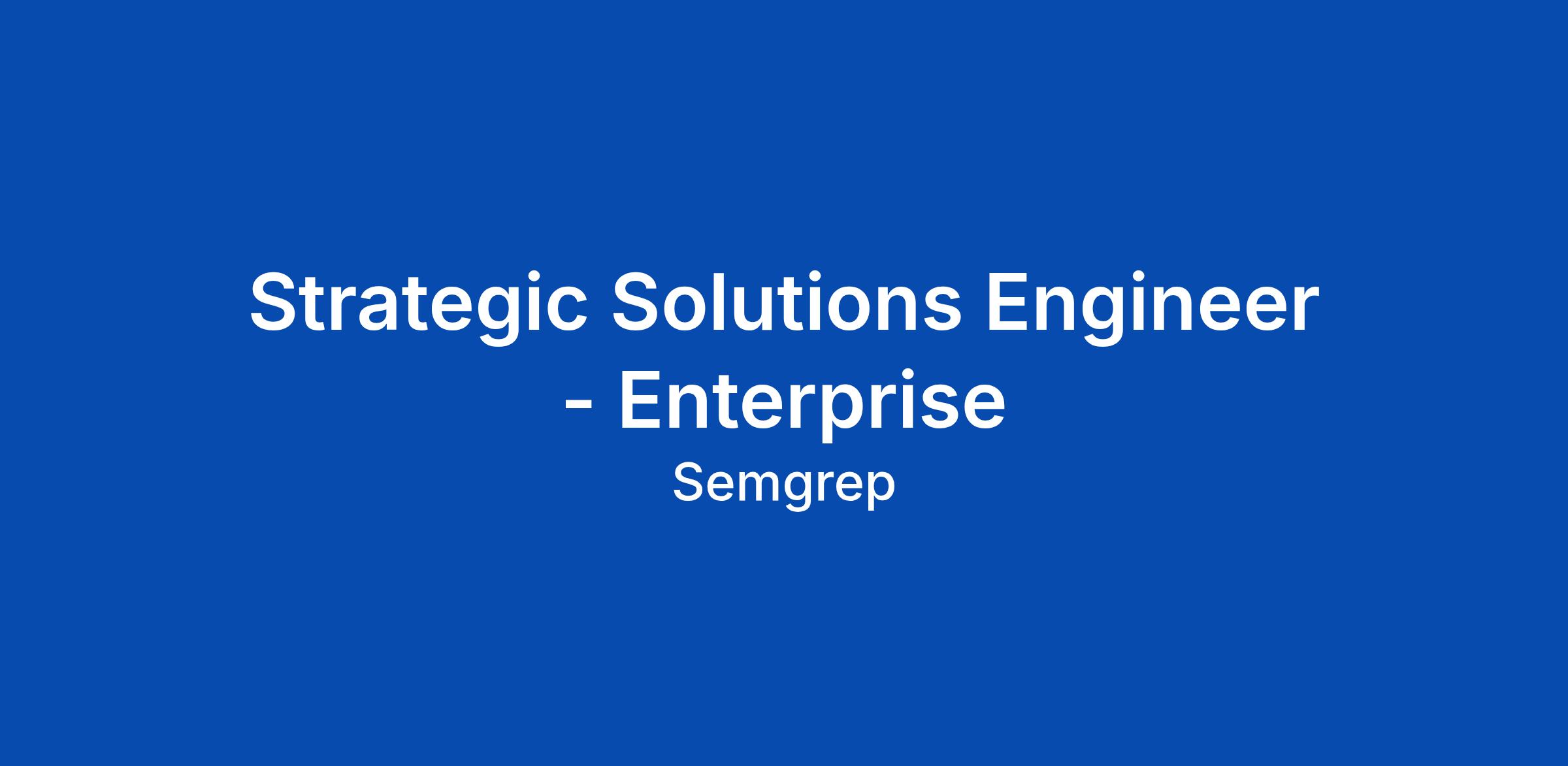 Strategic Solutions Engineer - Enterprise