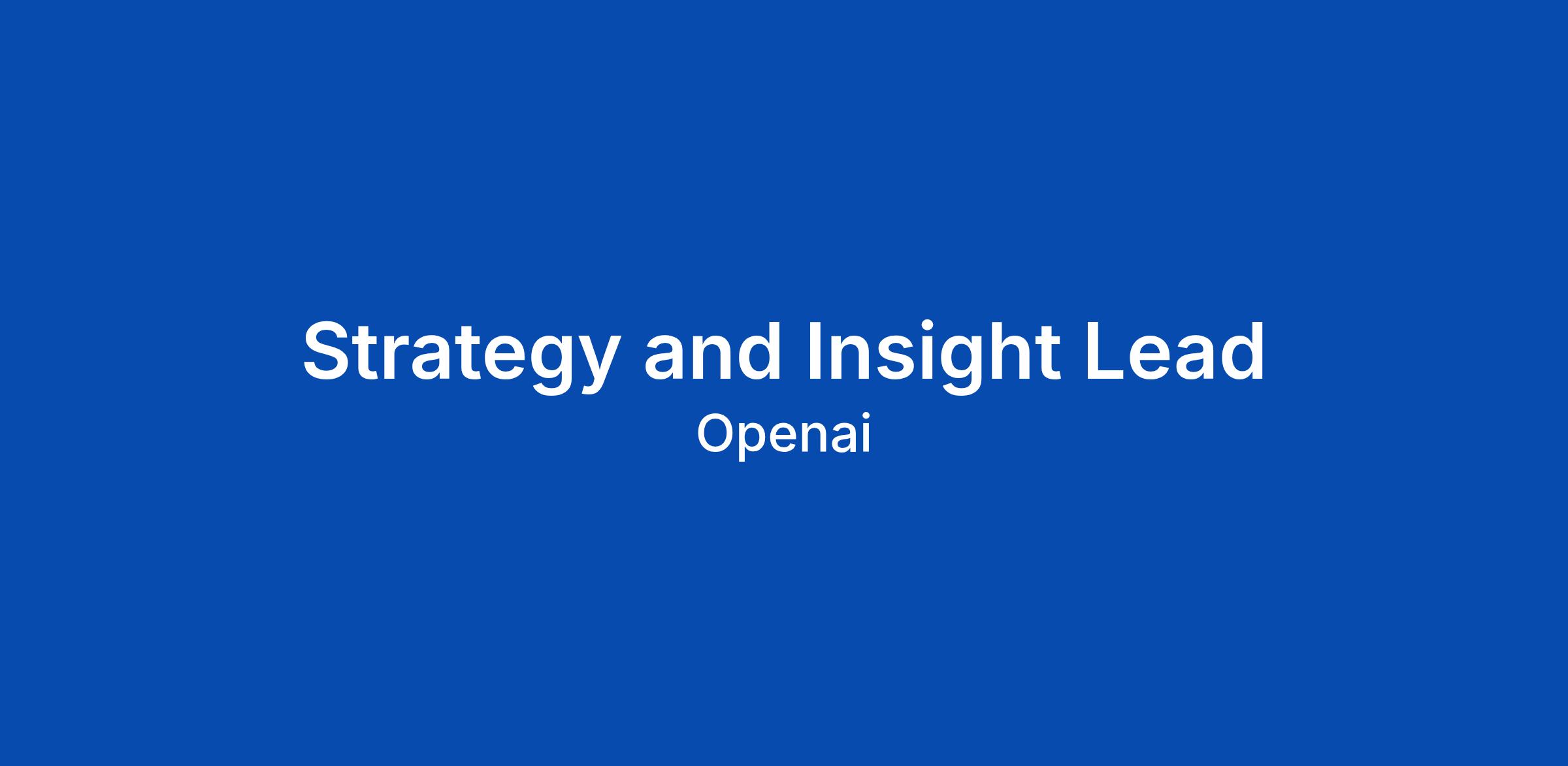 Strategy and Insight Lead