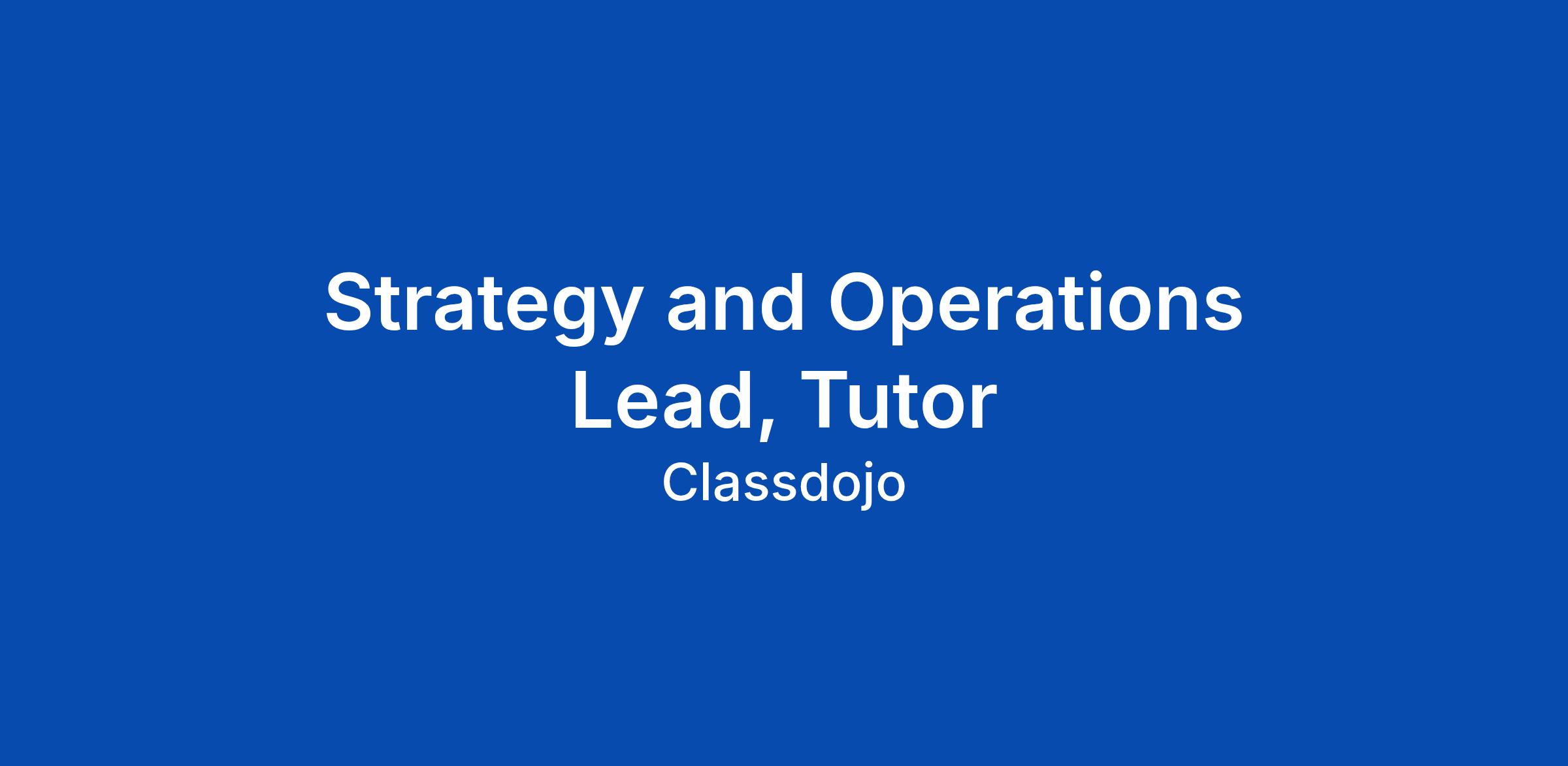 ClassDojo's goal is to give every child on Earth an education they love. We started by building a powerful network for communication. ClassDojo’s flagship app is the #1 communication app connecting K-12 teachers, children, and families globally. Teachers use it to share what’s happening throughout the day through photos, videos, and messages that make parents feel like they’re there. It’s actively used in over 95% of US schools, reaching over 45 million children in 180 countries, with a team of just around 200 people [1]. We are now beginning to use this network to give kids the best learning experiences in the world, far beyond those a standard school can provide. We hire for talent density. Our team comprises the most talented, entrepreneurial, and innovative teammates from around the world, with experience in education and large scale consumer internet companies, including Instagram, Netflix, Dropbox, Stripe, Uber, Y Combinator, and more. We’re building a company where the most talented people want to work. We believe you’ll do the best work of your life here—and you’ll pioneer the future of education, too. About the role: We’re looking for a Strategy and Operations Lead to driv