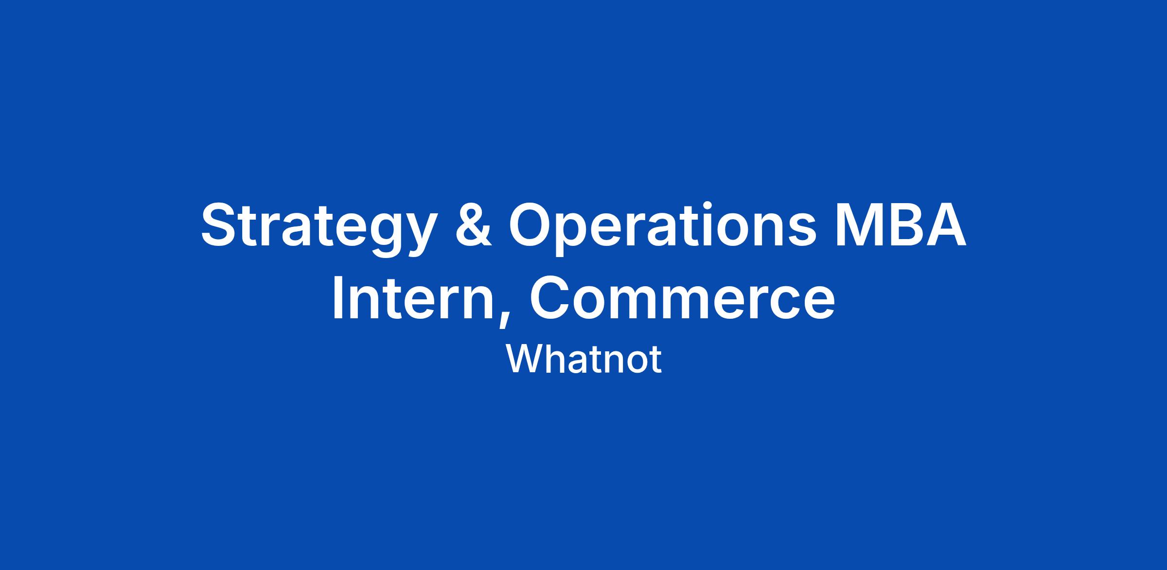 Strategy & Operations MBA Intern, Commerce