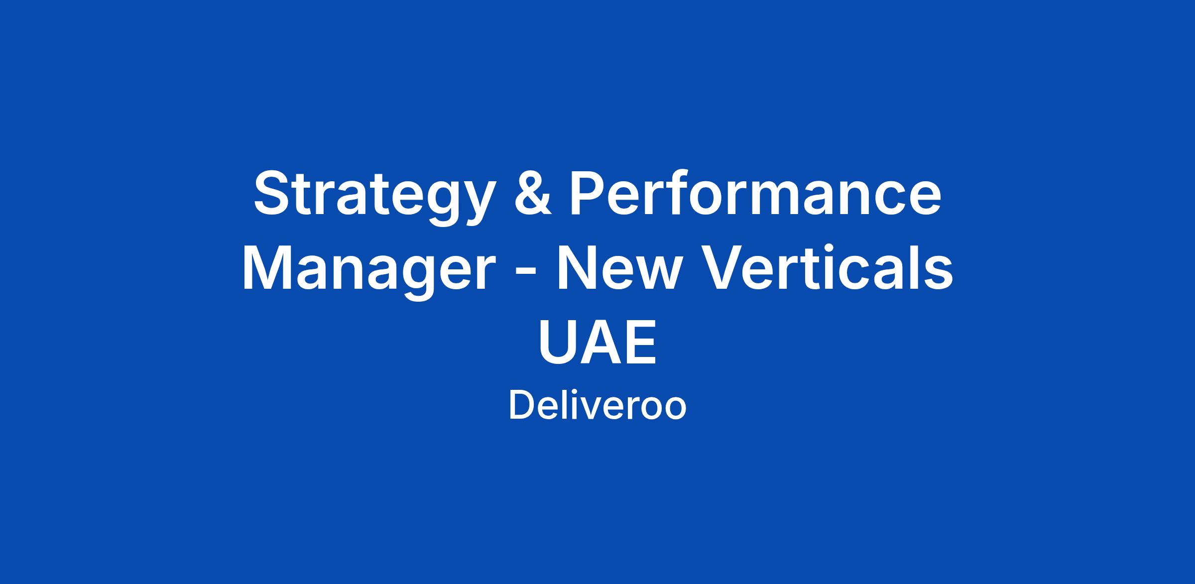Strategy & Performance Manager - New Verticals UAE
