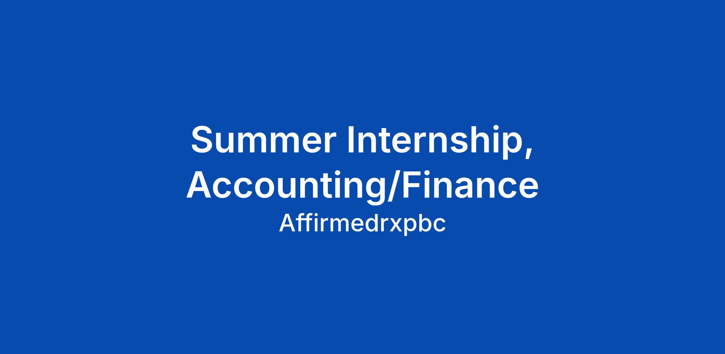 Summer Internship, Accounting/Finance