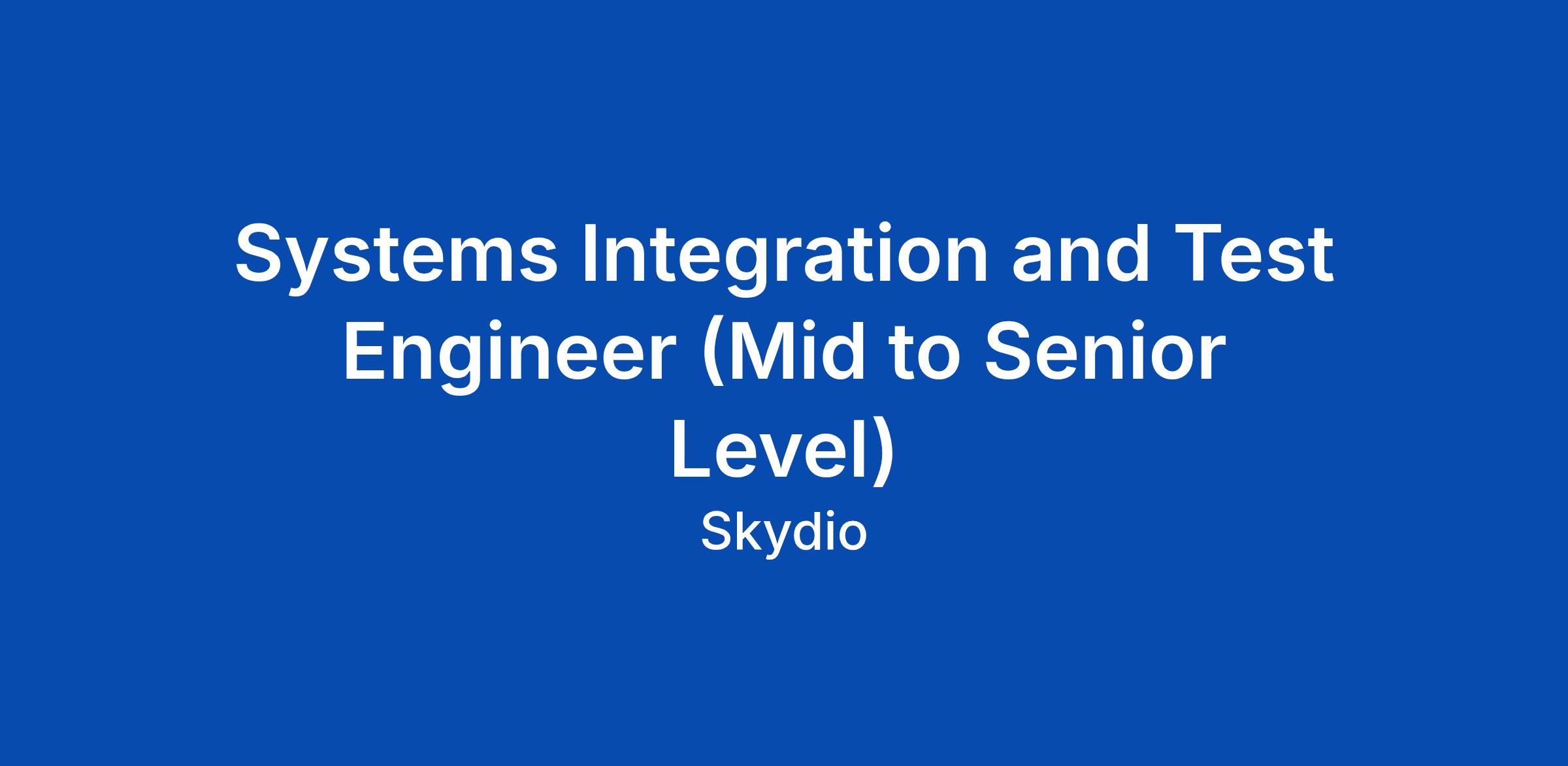 Systems Integration and Test Engineer (Mid to Senior Level)