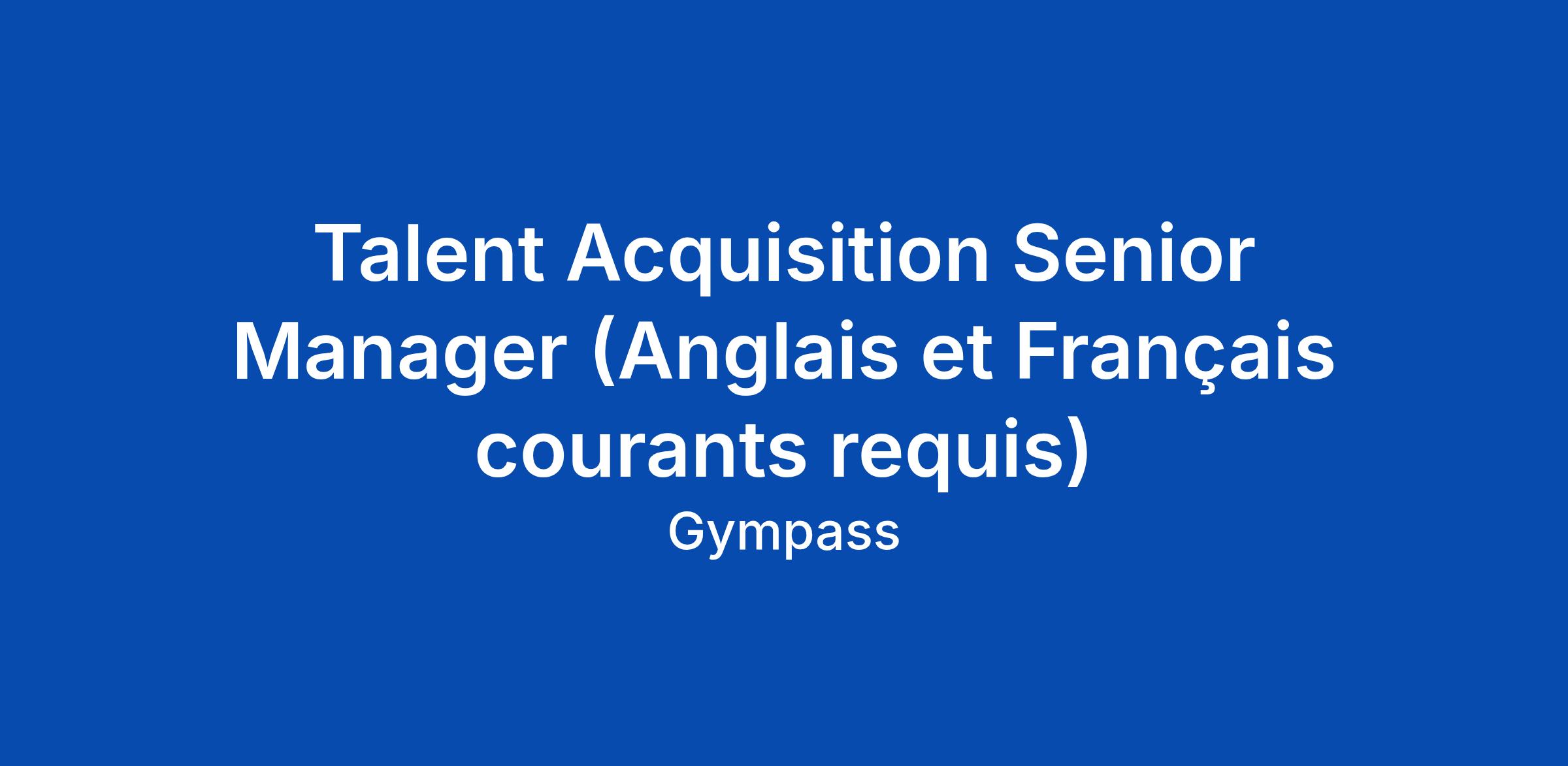 Talent Acquisition Senior Manager (Anglais et FranΓ§ais courants requis)