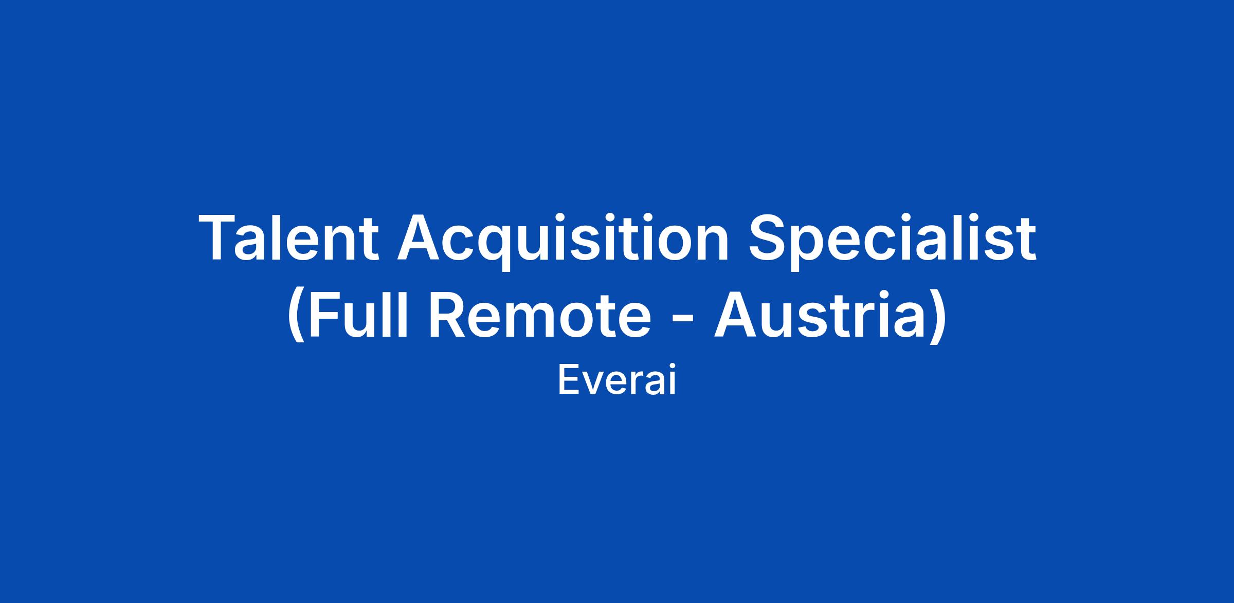 Talent Acquisition Specialist (Full Remote - Austria)