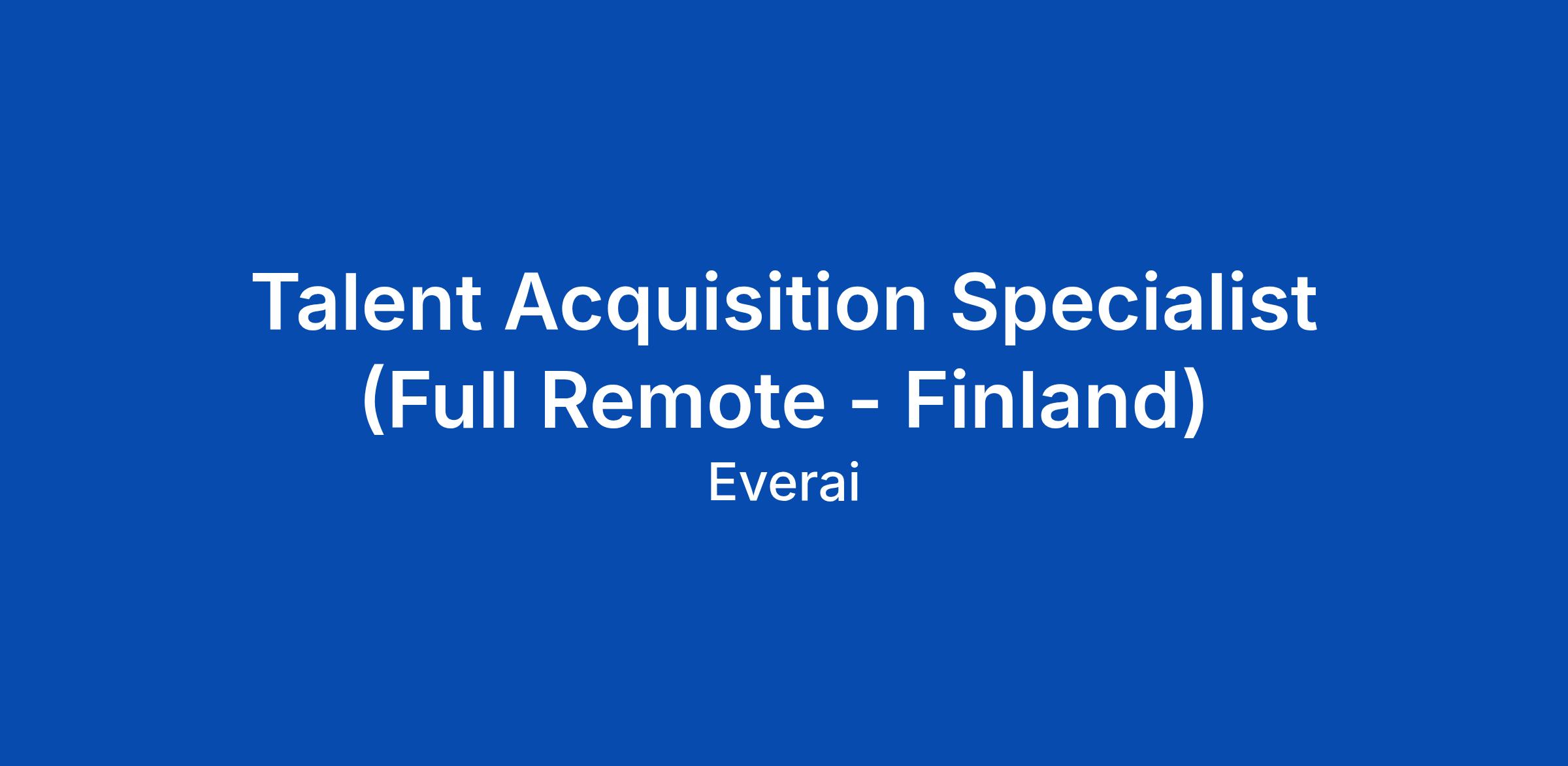 Talent Acquisition Specialist (Full Remote - Sweden)