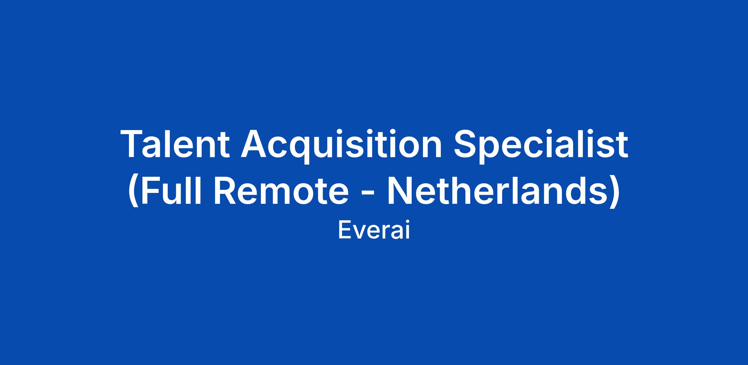 Talent Acquisition Specialist (Full Remote - Netherlands)