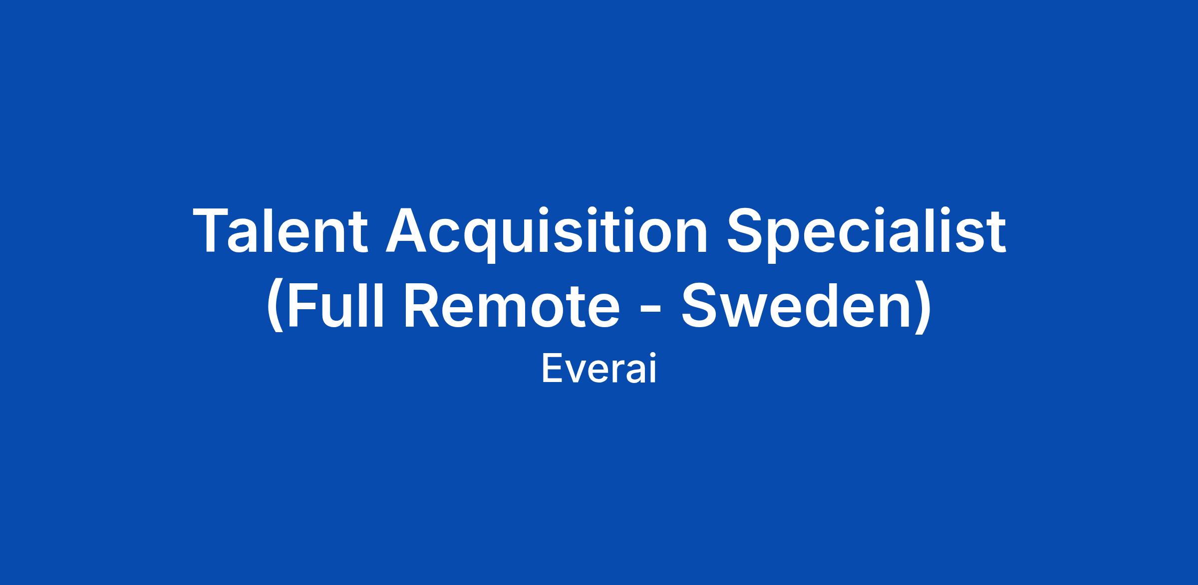 Talent Acquisition Specialist (Full Remote - Sweden)