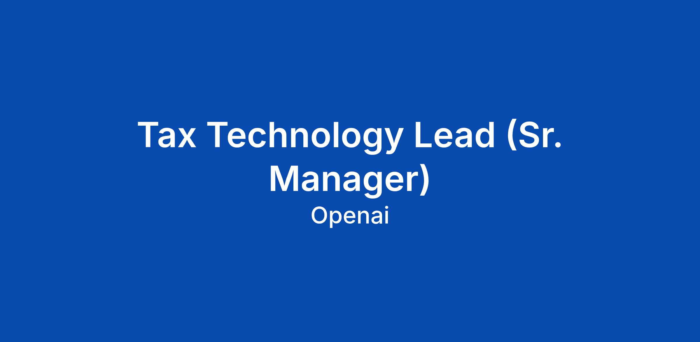 Tax Technology Lead (Sr. Manager)
