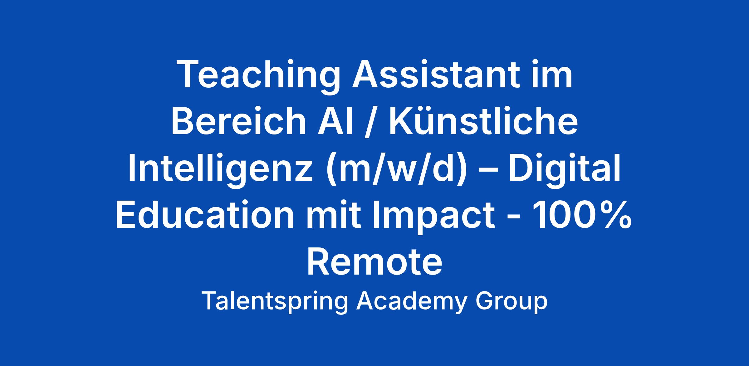 Teaching Assistant im Bereich AI / Künstliche Intelligenz (m/w/d) – Digital Education mit Impact - 100% Remote