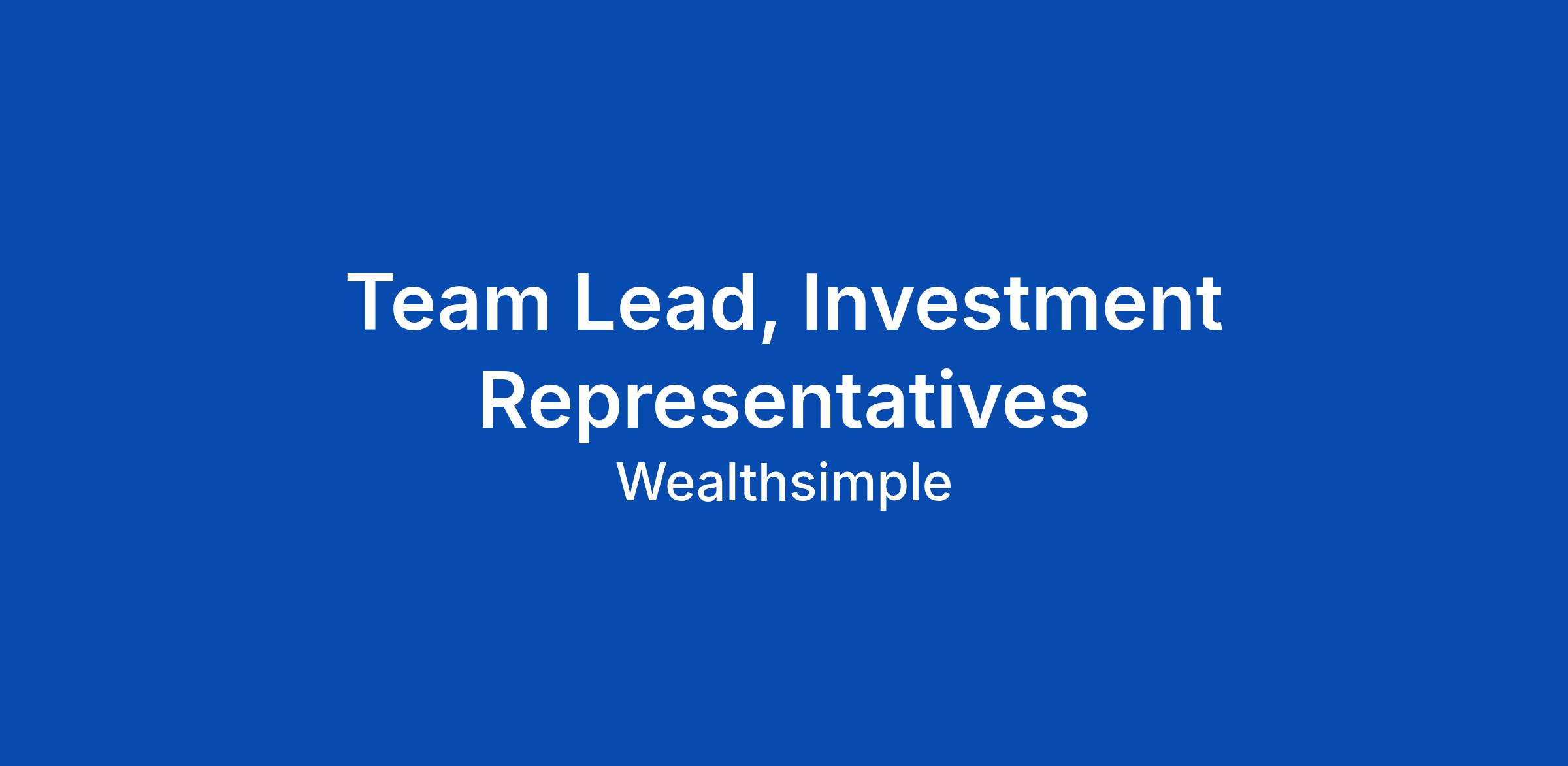Team Lead, Investment Representatives