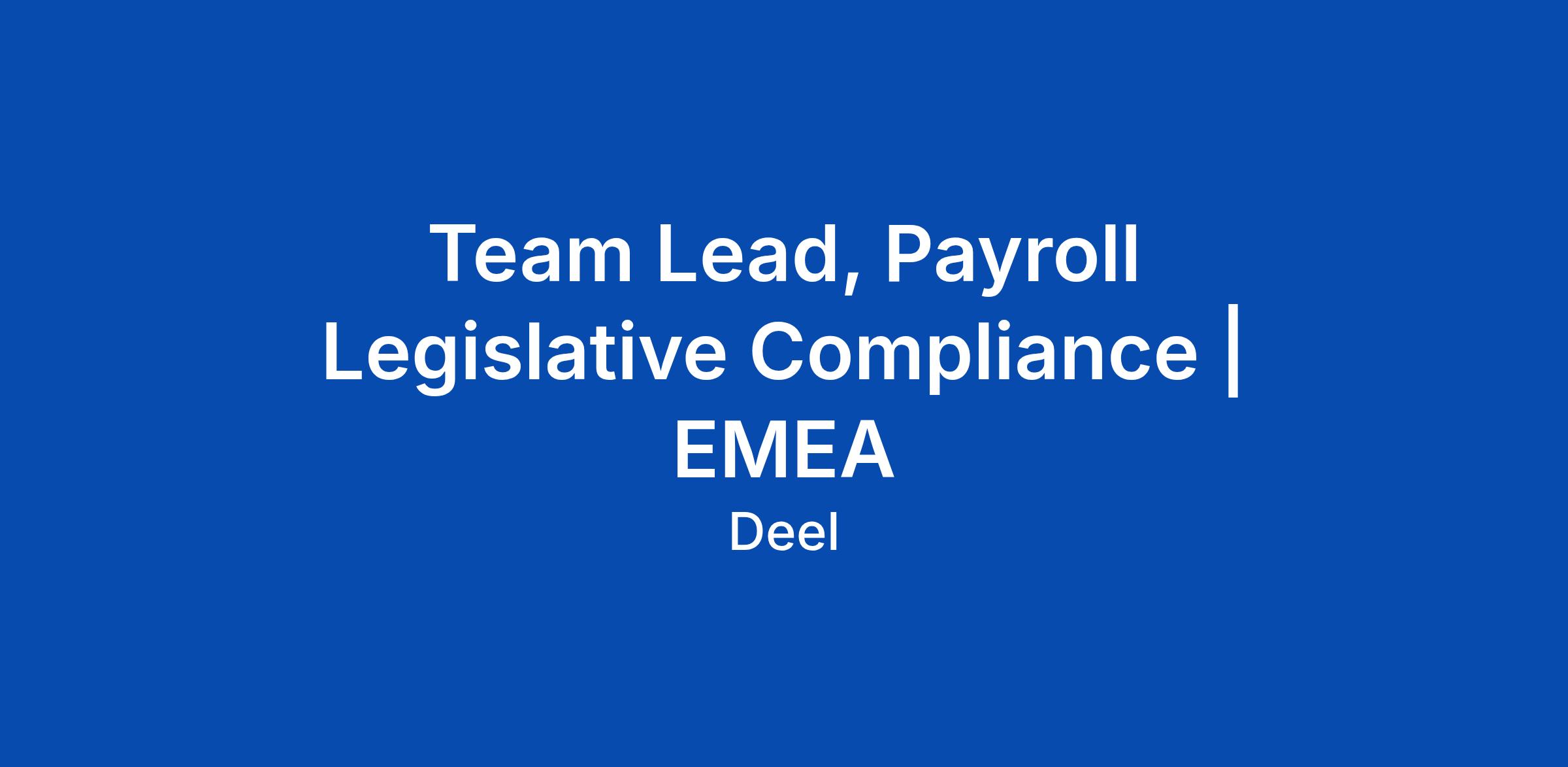 Team Lead, Payroll Legislative Compliance | EMEA