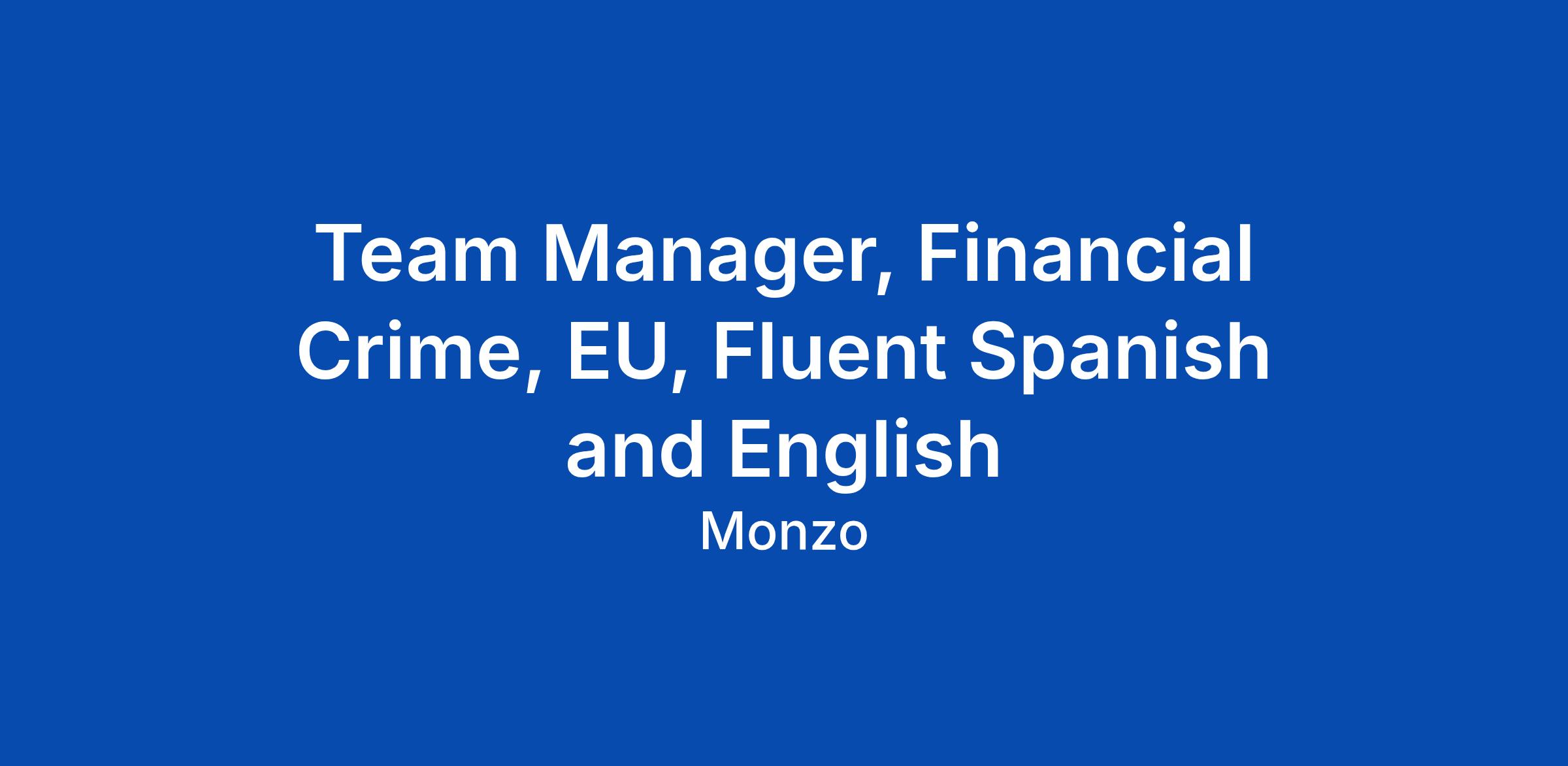 Team Manager, Financial Crime, EU, Fluent Spanish and English