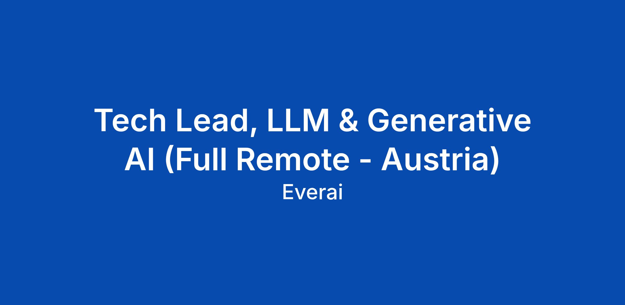 Tech Lead, LLM & Generative AI (Full Remote - Austria)