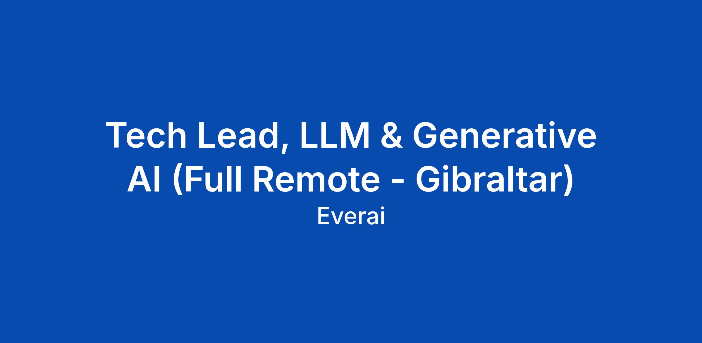 Tech Lead, LLM & Generative AI (Full Remote - Gibraltar)
