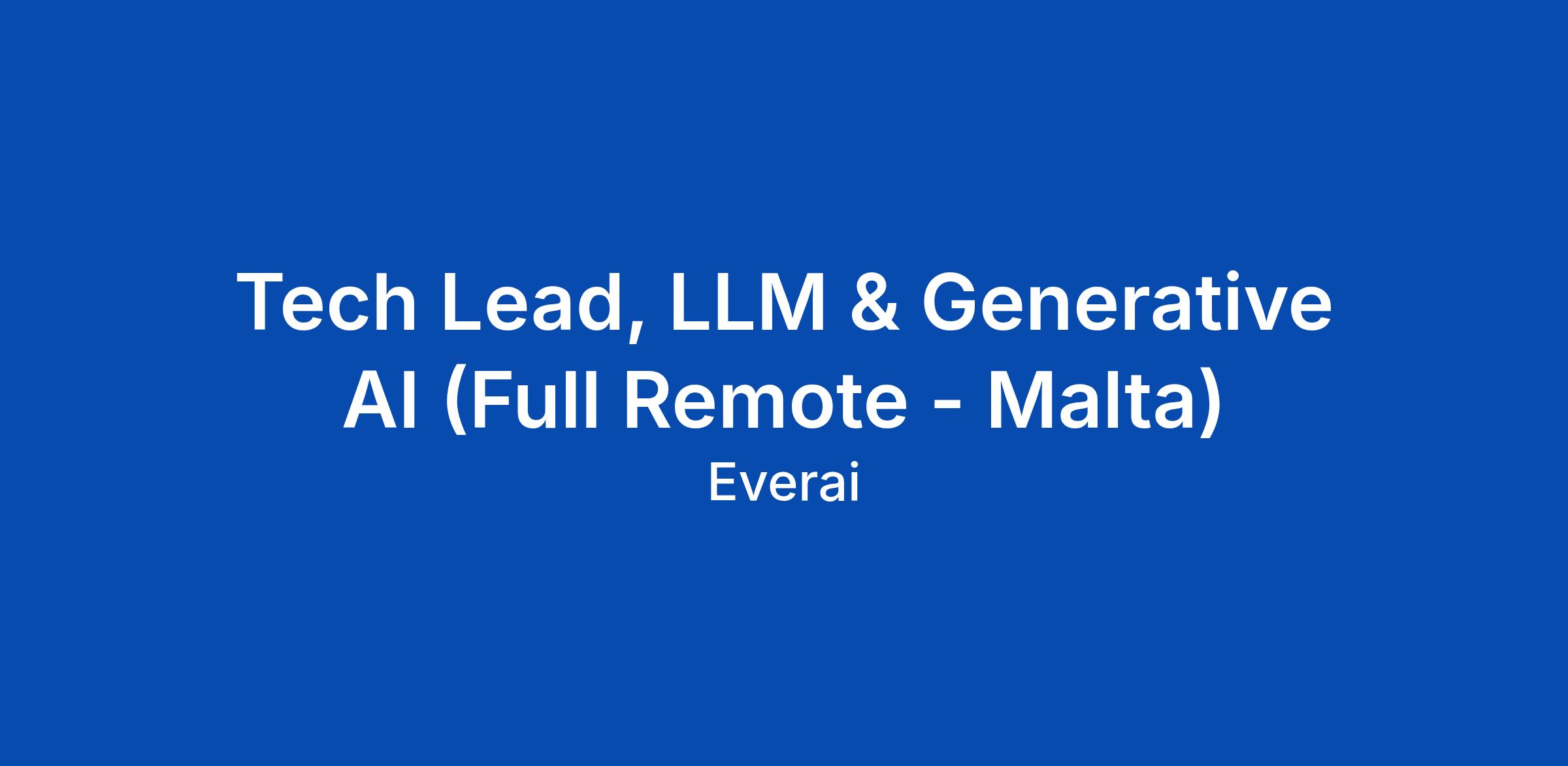 Tech Lead, LLM & Generative AI (Full Remote - Malta)