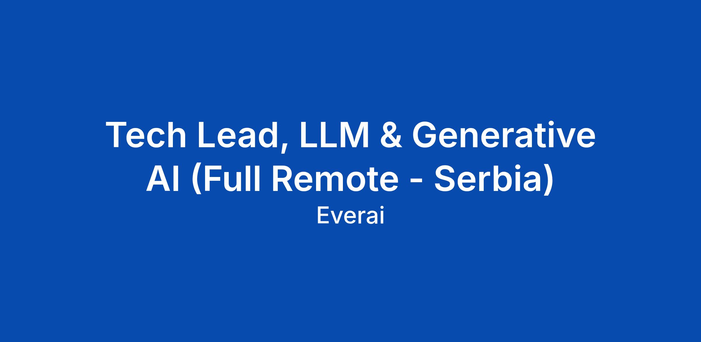 Tech Lead, LLM & Generative AI (Full Remote - Serbia)