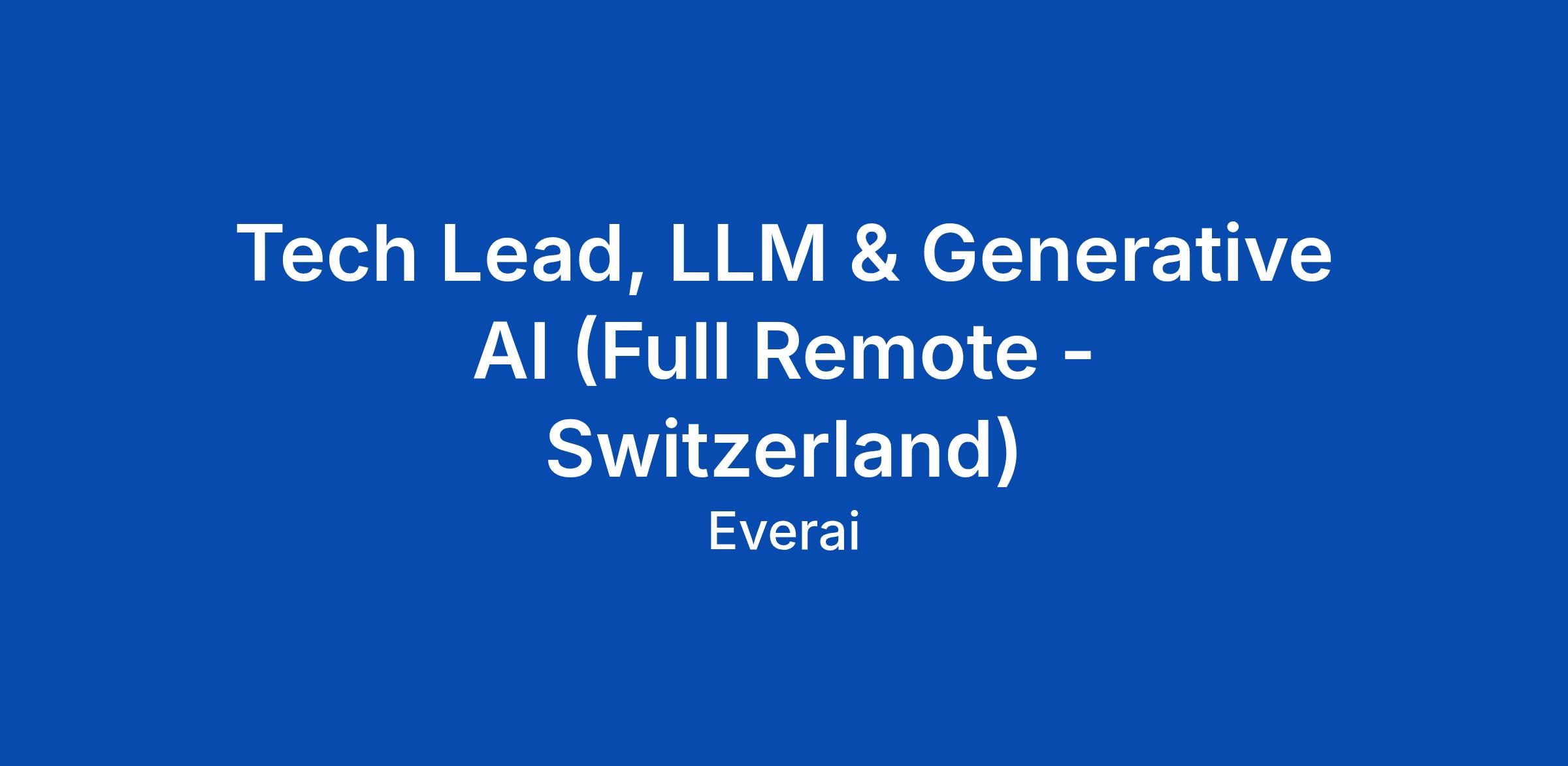 Tech Lead, LLM & Generative AI (Full Remote - Switzerland)