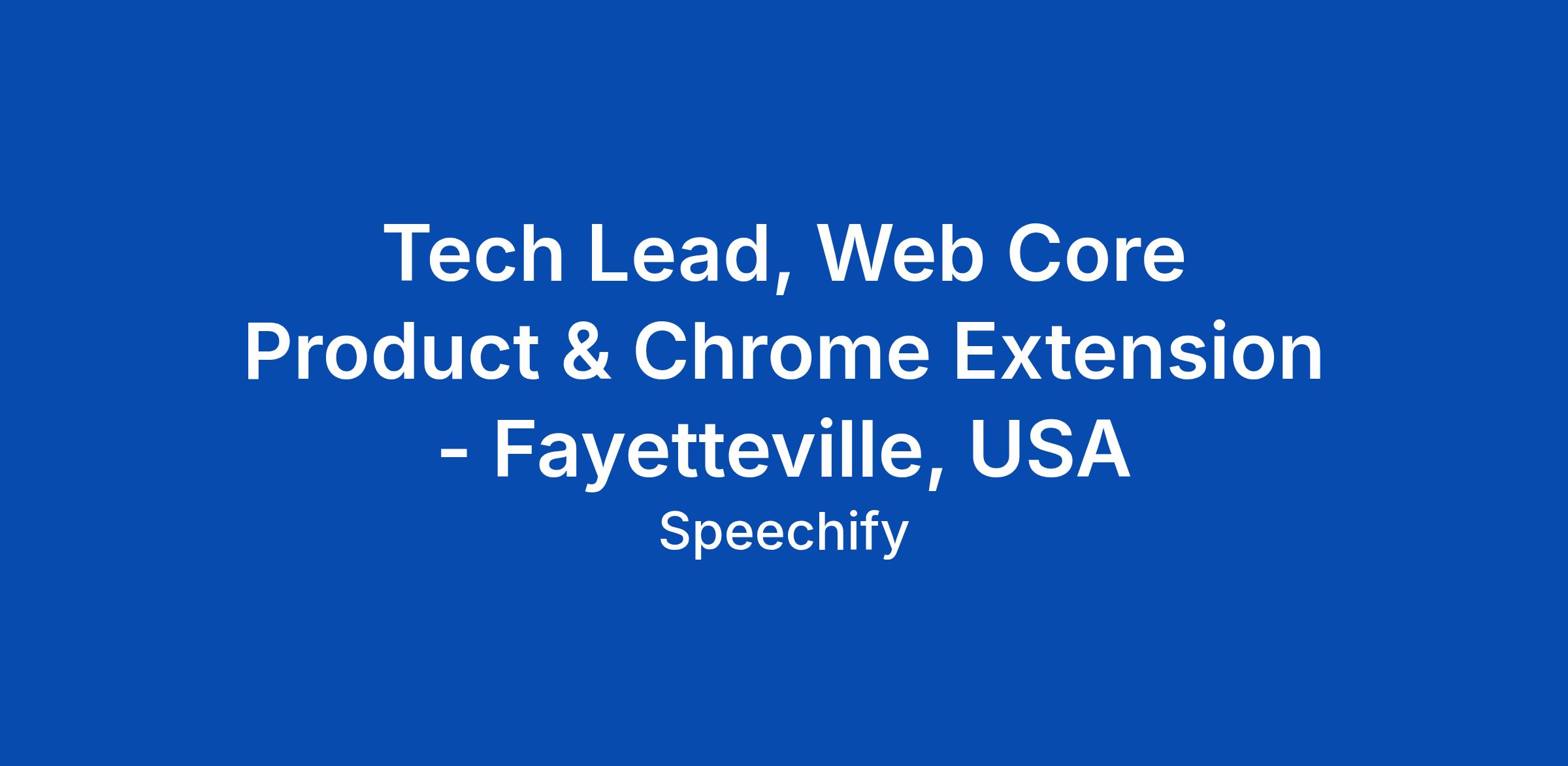 Tech Lead, Web Core Product & Chrome Extension - Fayetteville, USA