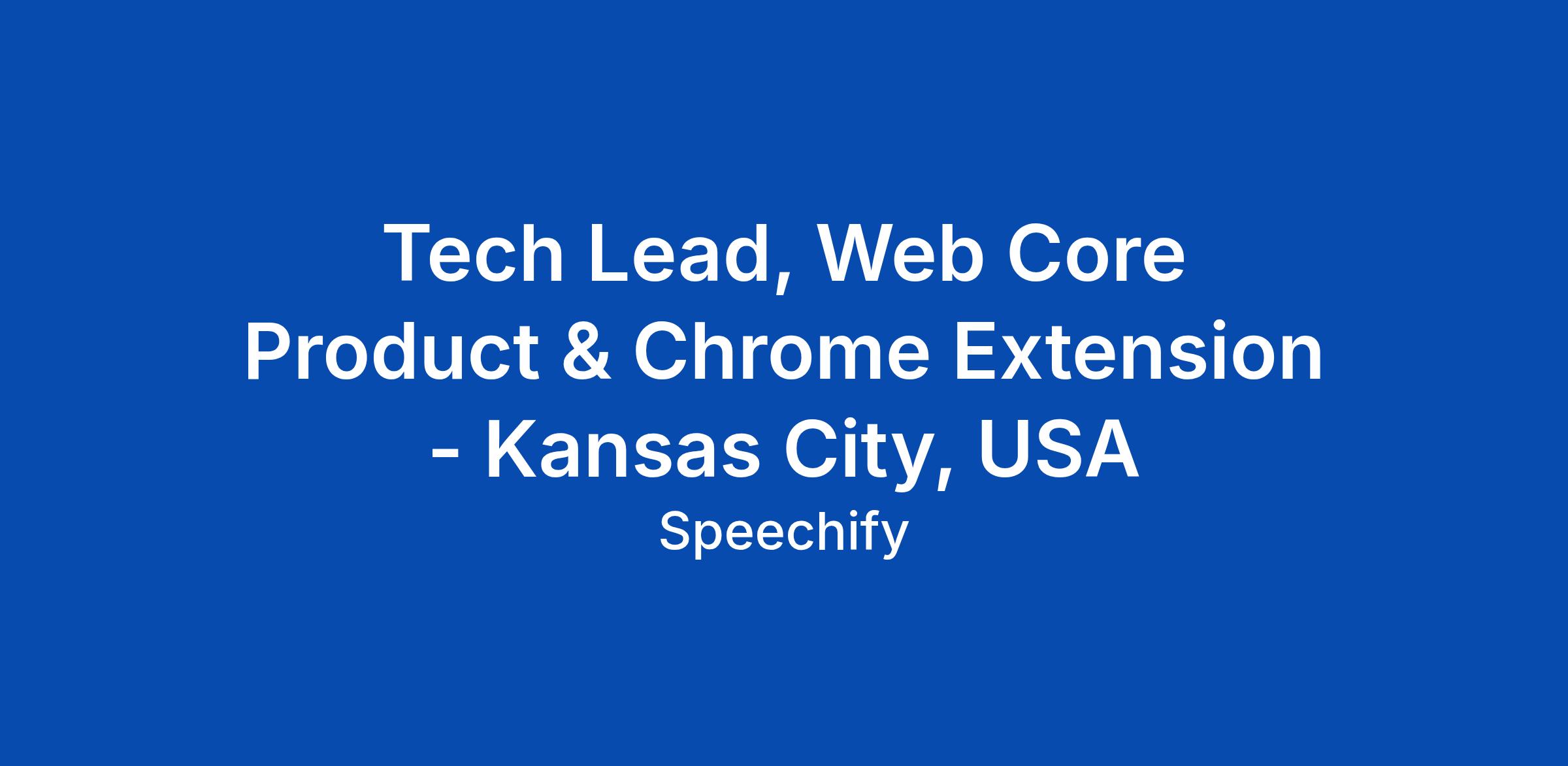 Tech Lead, Web Core Product & Chrome Extension - Kansas City, USA