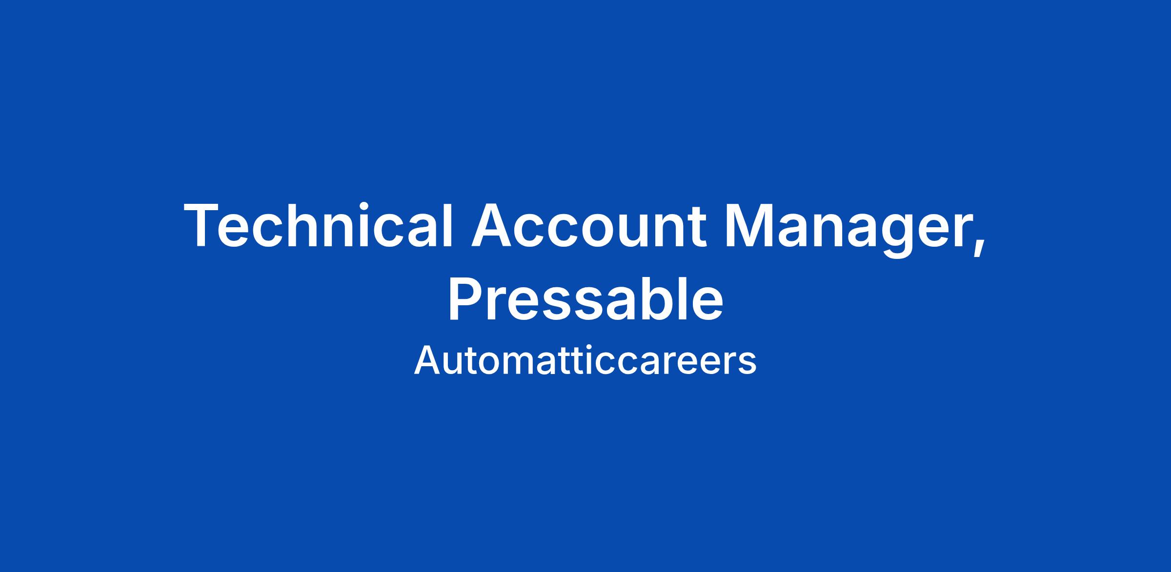 At Pressable, weβre looking for a Senior Technical Account Manager to help elevate and standardize our post-sales motion. Partnering closely with leadership, you will manage a high-value portfolio while helping codify the playbooks that will scale our existing TAM organization.