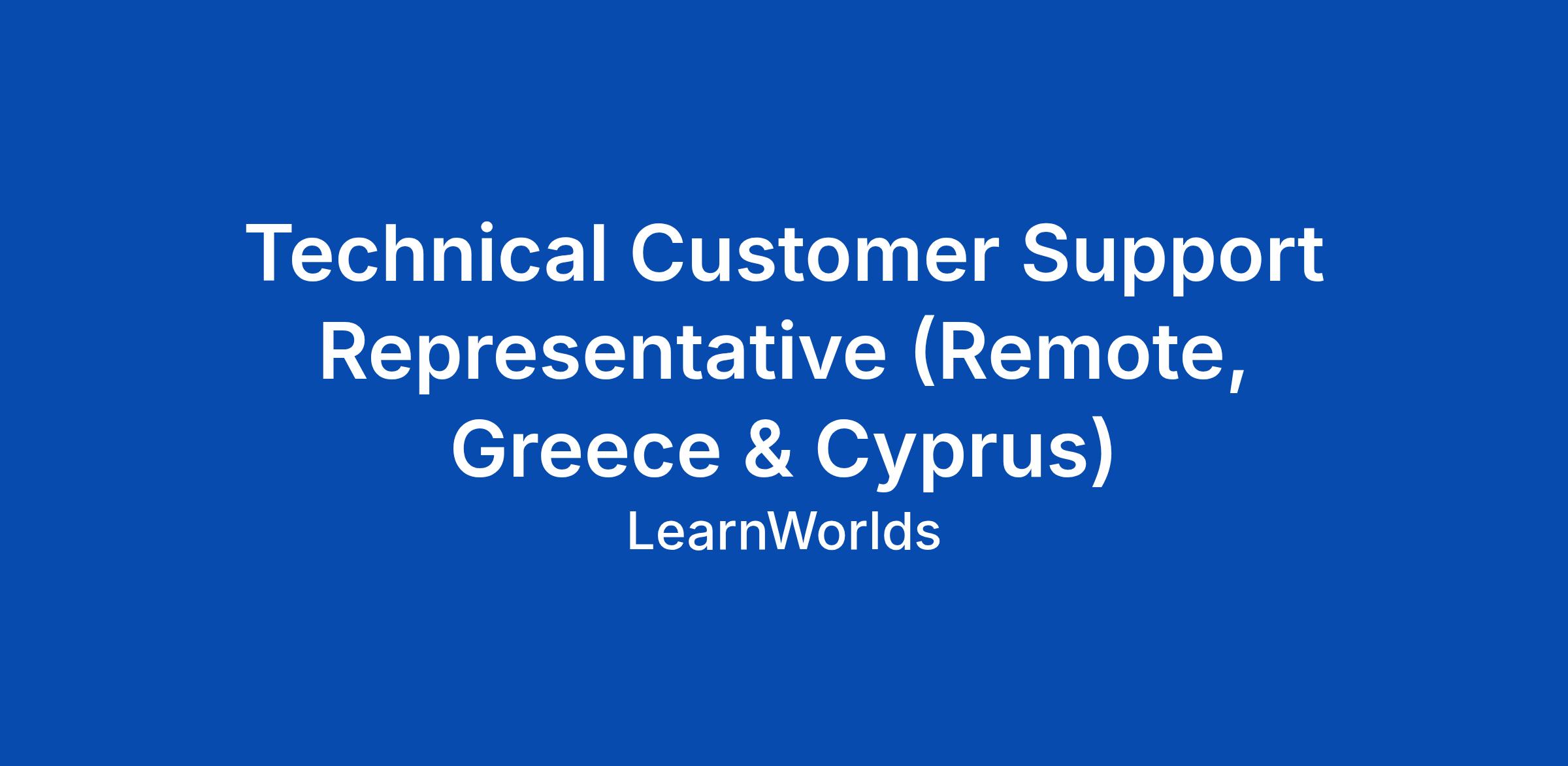 Technical Customer Support Representative (Remote, Greece & Cyprus)