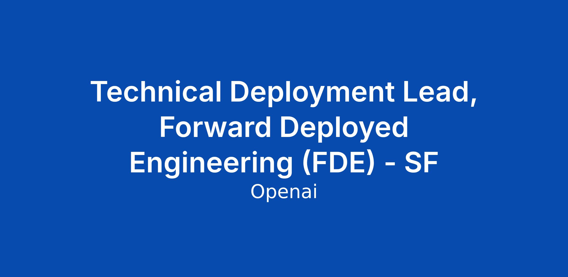 Technical Deployment Lead, Forward Deployed Engineering (FDE) - SF