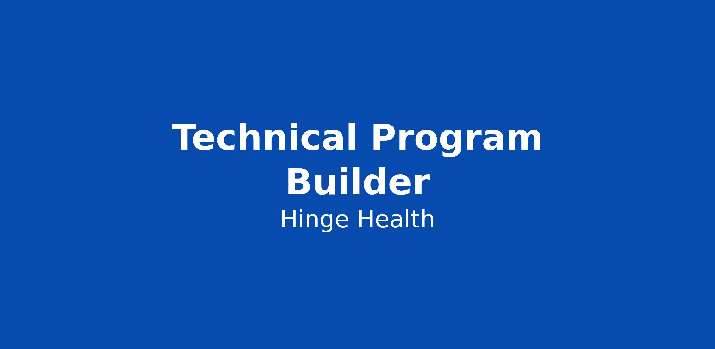 THE OPPORTUNITY At Hinge Health, we’re transforming how 20+ million people access musculoskeletal care through AI-powered, human-centered solutions - and our R&D organization is the engine behind that innovation. We’re looking for a Technical Program Builder to join the Office of the CTO and architect the R&D operational engine. This is a unique “builder” TPM role where you won’t just manage processes. You will design and implement the systems, tooling, and AI agents that automate them. You’ll leverage AI, automation, and smart infrastructure to eliminate manual coordination, reduce operational drag, and enable teams to move faster with clarity and precision. If you have seen program management at complex organizations first hand and found yourself thinking “this meeting could be automated” or “we shouldn’t need a human to track this,” you’ll thrive here. This role is about building scalable execution infrastructure - not status reporting. You will act as a force multiplier for engineering teams, creating systems that streamline cross-pod coordination and ensure our internal operations are as innovative as the care we deliver to our members. WHAT YOU'LL ACCOMPLISH IN YOUR FIRST 3 M