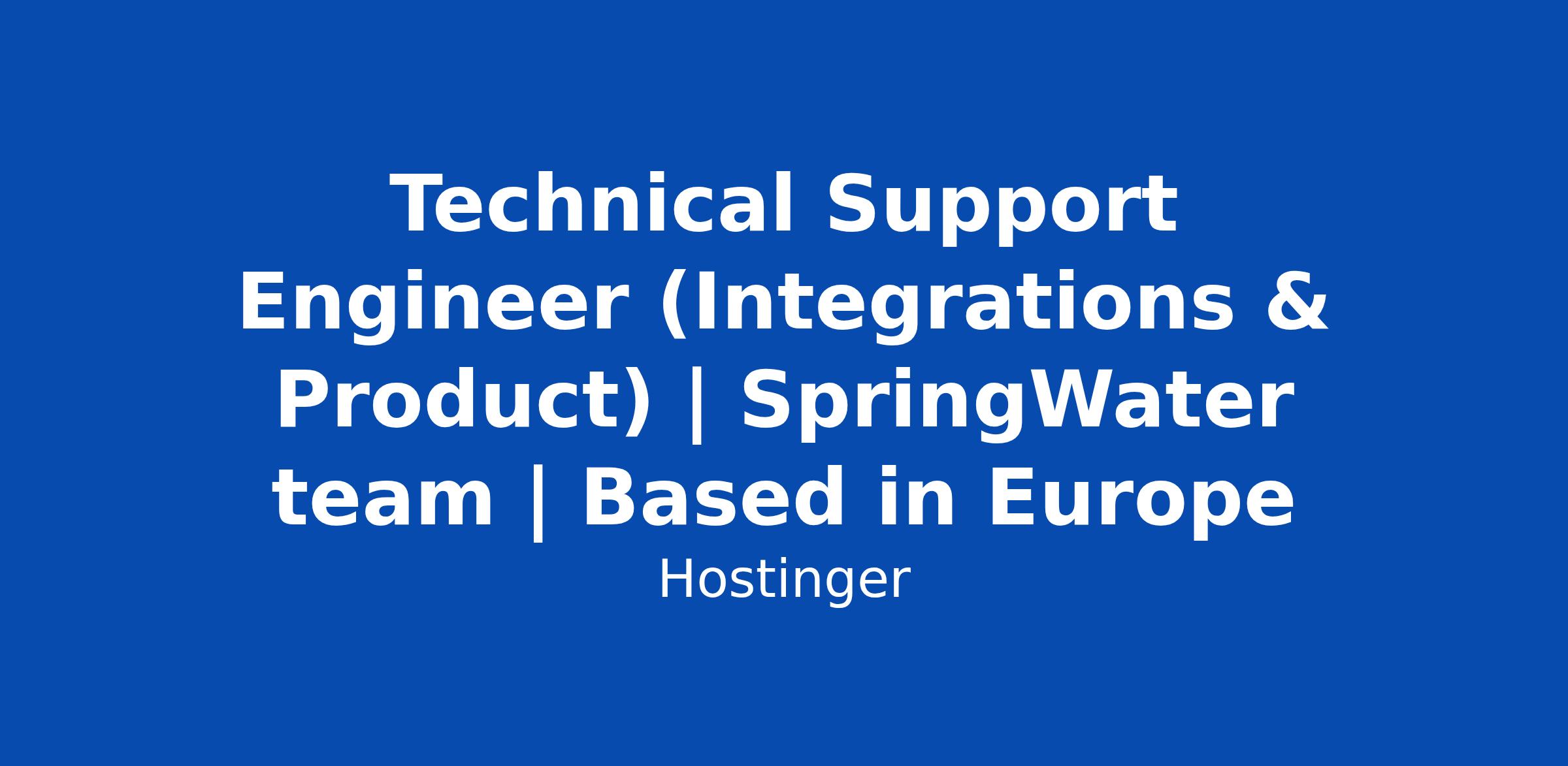 Do you get a genuine kick out of solving complex technical problems while making customers feel genuinely supported? Keep reading π Weβre looking for a Technical Support Engineer who combines strong technical depth with a natural ability to communicate clearly and empathetically. If you thrive in a high-ownership environment where your work directly shapes the product and the customer experience - youβll feel at home here. About the company πββ SpringWater is a sister company of Hostinger, and we are looking for a team member to join a role at an acquired company in the affiliate marketing software space. This company is a small but mighty international team with an even mightier goal: turn a strong SaaS product into a growth machine. To achieve that we are looking for a technically sharp, customer-obsessed support engineer who understands that great customer experience is itself a growth driver. Your role This isn't a typical support role. You'll use your JavaScript and HTML skills daily to troubleshoot integrations, guide users through technical setups, and collaborate with the team to improve the overall user experience. At FirstPromoter, support is a strategic function - and yo