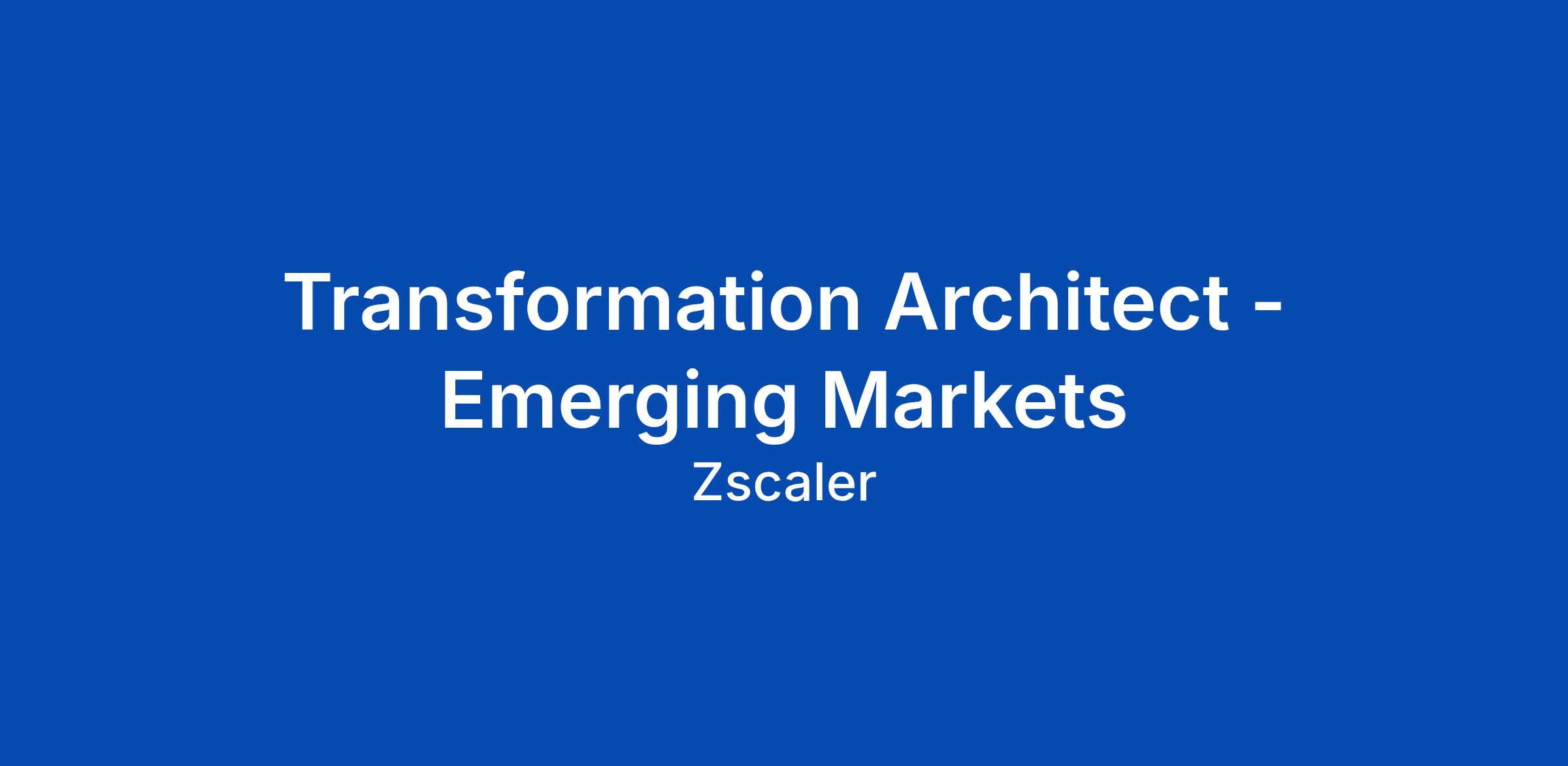 Transformation Architect - Emerging Markets
