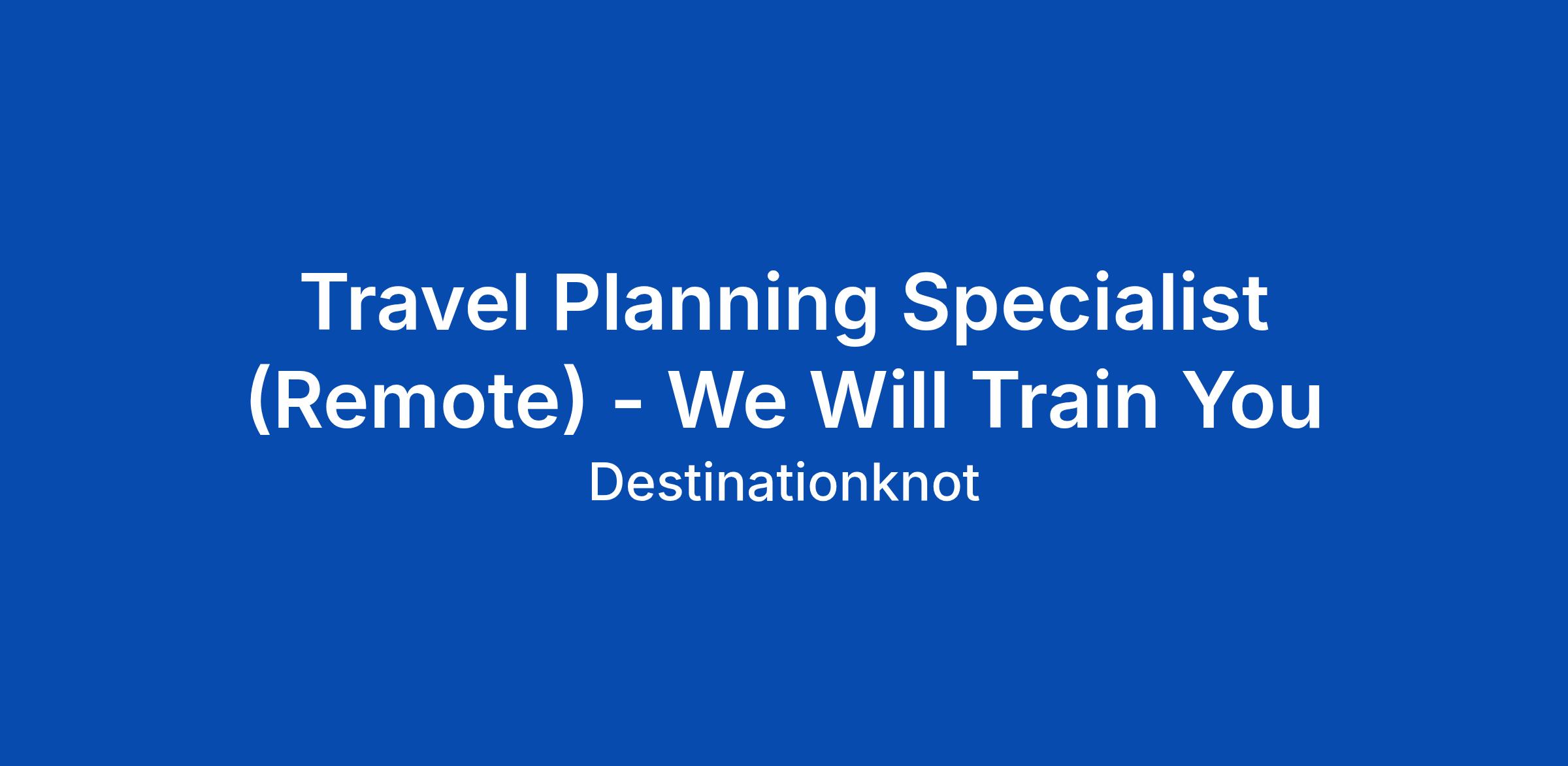 Travel Planning Specialist (Remote) - We Will Train You