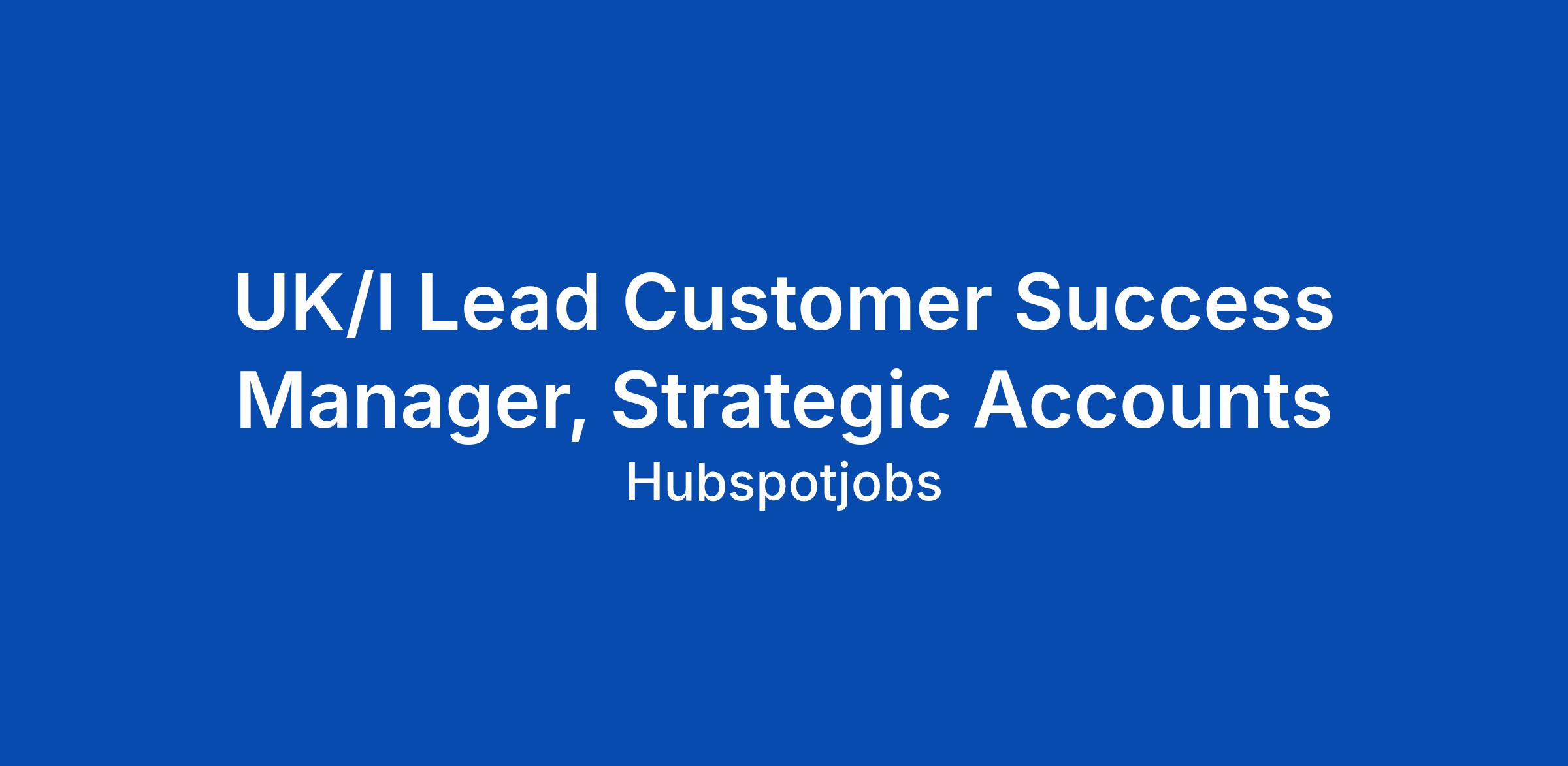 UK/I Lead Customer Success Manager, Strategic Accounts