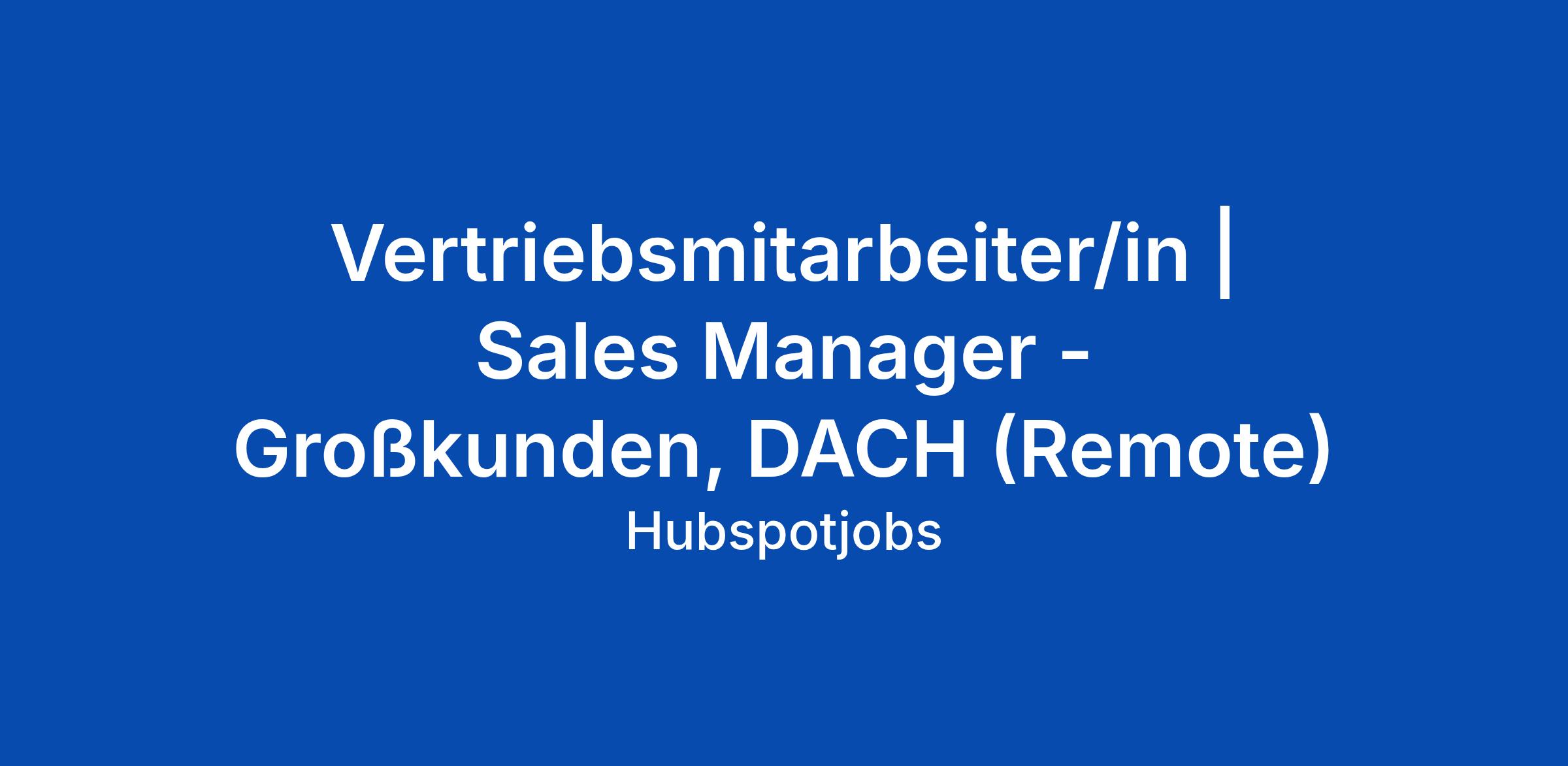 Vertriebsmitarbeiter/in | Sales Manager - GroΓkunden, DACH (Remote)